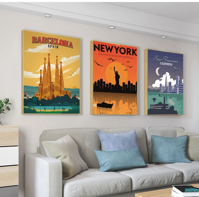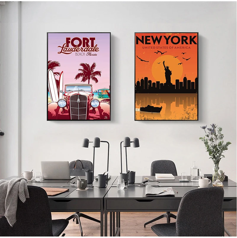 Пейзаж Художественная Картина на холсте настенные картины Домашний Декор скандинавский винтажный постер города путешествия Нью-Йорк Нидерланды Амстердам Лондон
