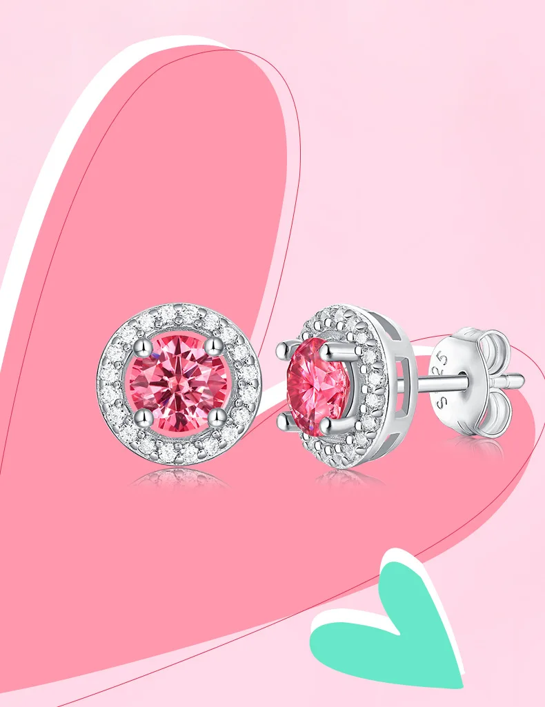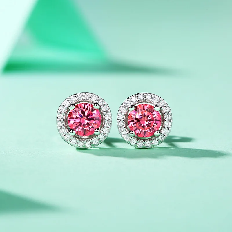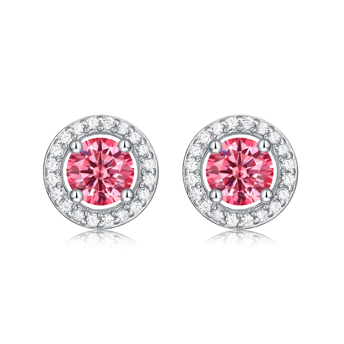 Женские серьги-гвоздики из серебра 925 пробы с превосходным розовым муассанитом