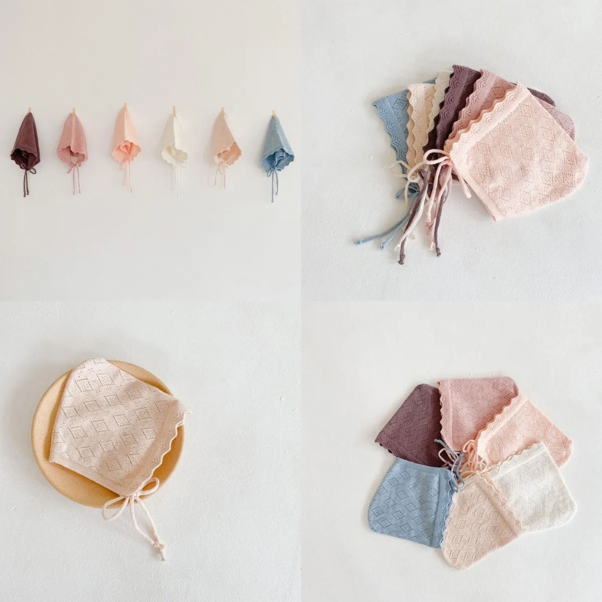 Шапки для маленьких девочек, хлопковые однотонные детские шапки и для новорожденных от 0 до 24 месяцев, вязаная шапка с кружевными цветами 900C