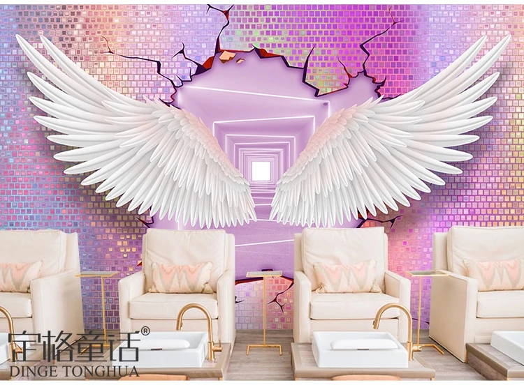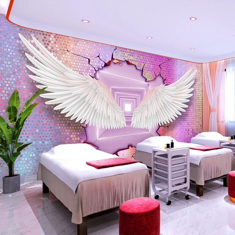 3D фон для салона красоты с крыльями, настенное украшение, роспись для спортзала, молока, чая, магазина, расширение, пространство, украшения, обои