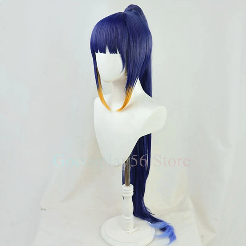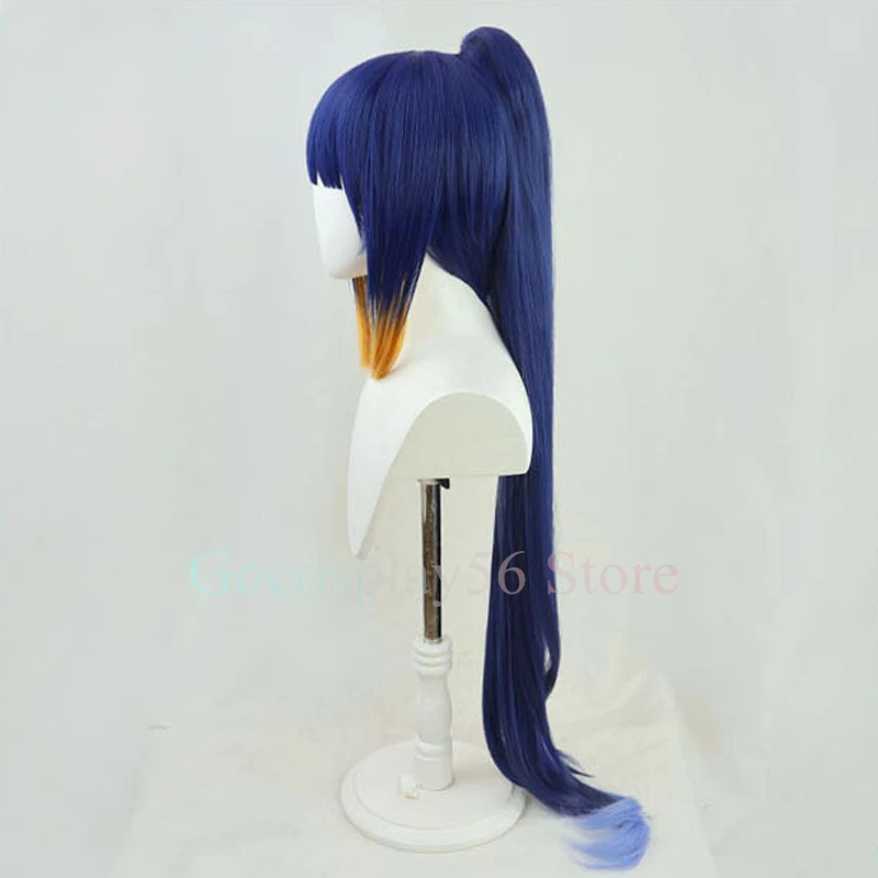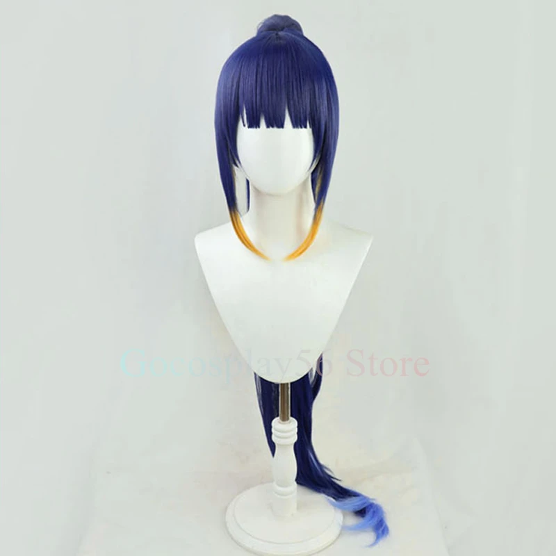 VTuber Ninomae inзанский парик для конского хвоста Hololive EN косплей для девочек Youtuber градиентные синие желтые длинные прямые Термостойкие волосы