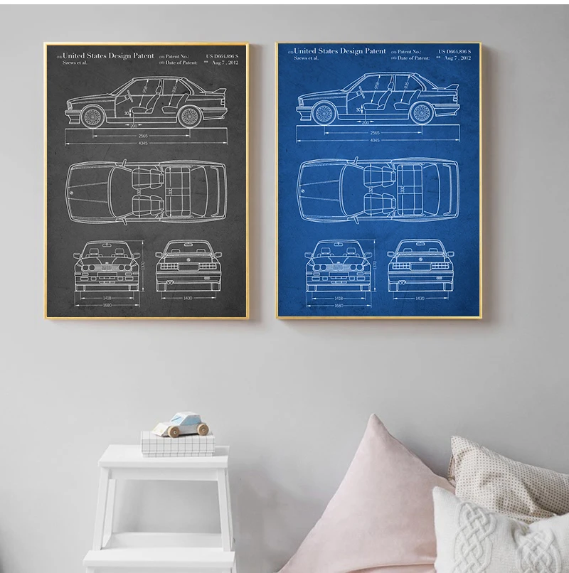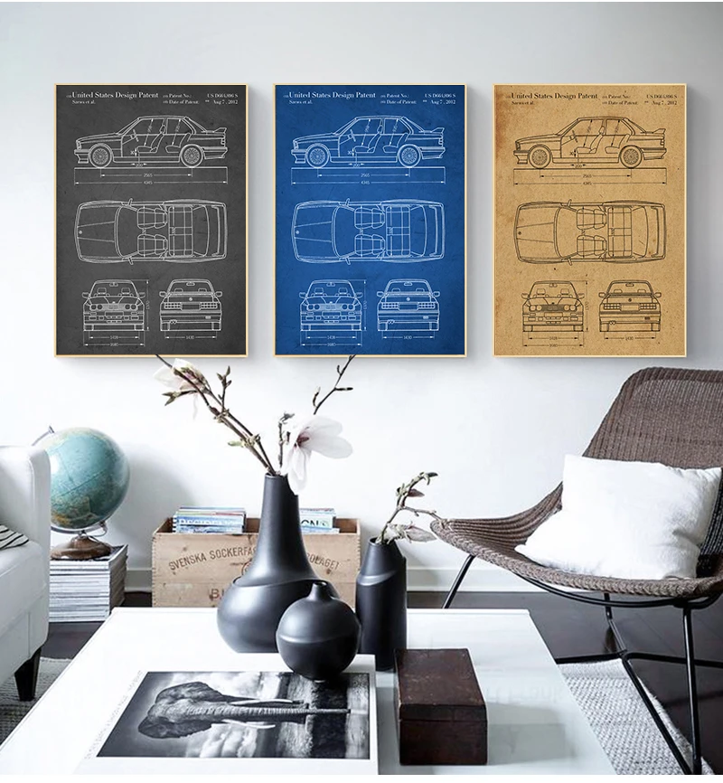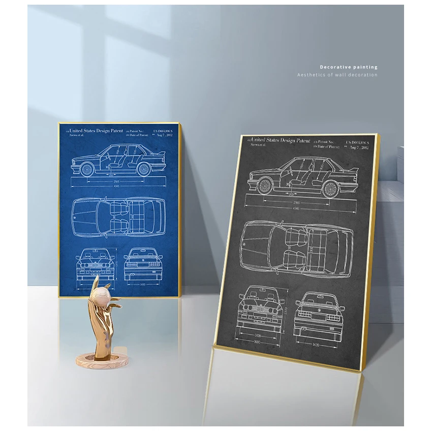 Печать, схема, идея подарка, настенные украшения для автомобиля E30 M3, искусство на стену автомобиля, транспортный плакат, декор комнаты,