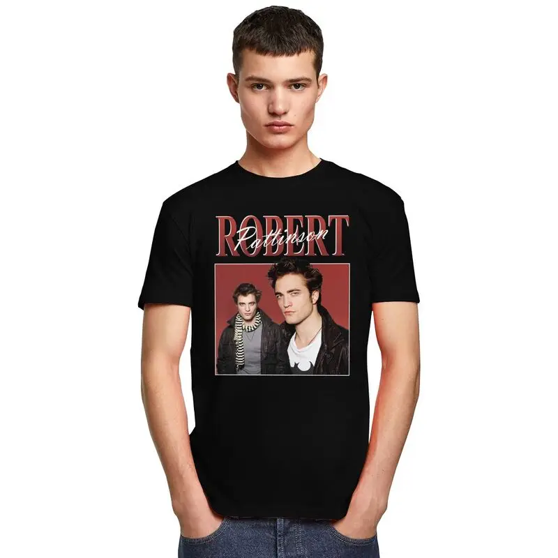 Винтажная классическая мужская футболка Роберта Паттинсона с коротк...