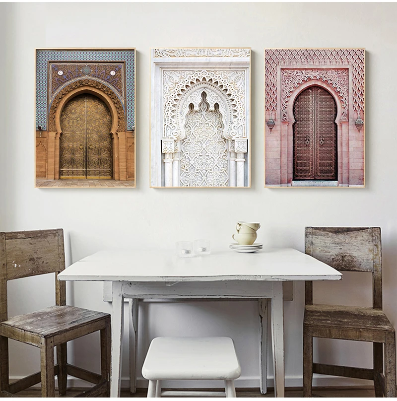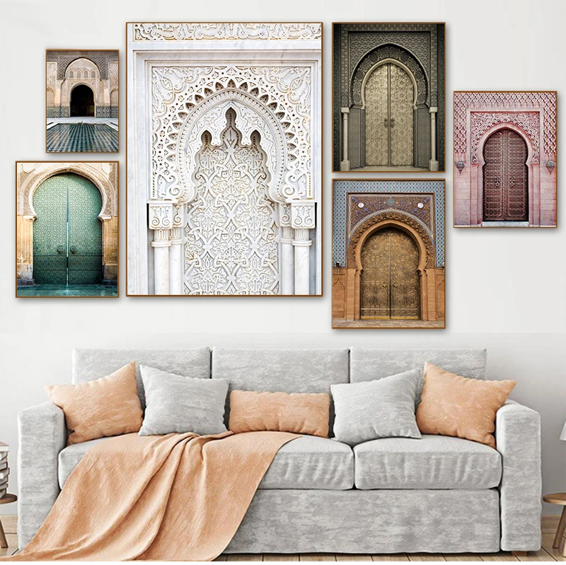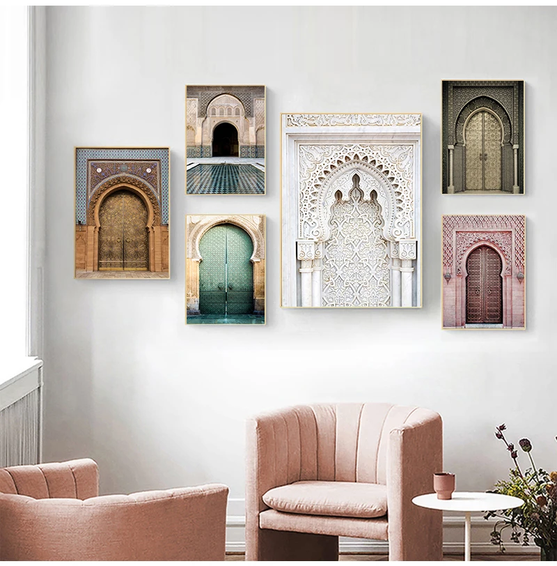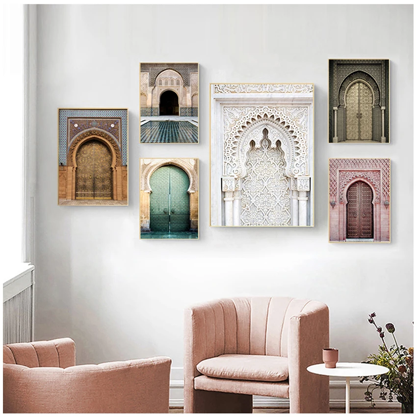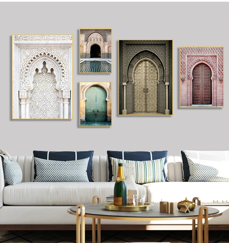 II печать мечети мусульманское украшение рисунок Марокканская Арка старая дверь холст живопись исламское здание настенный плакат Хасан