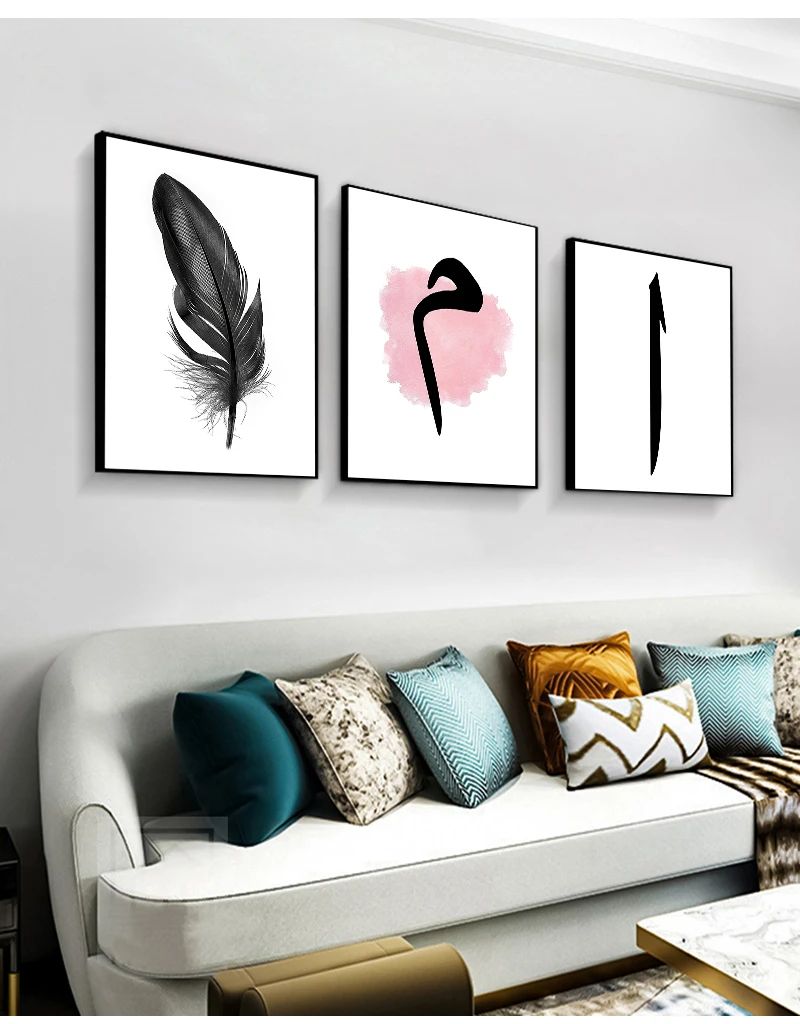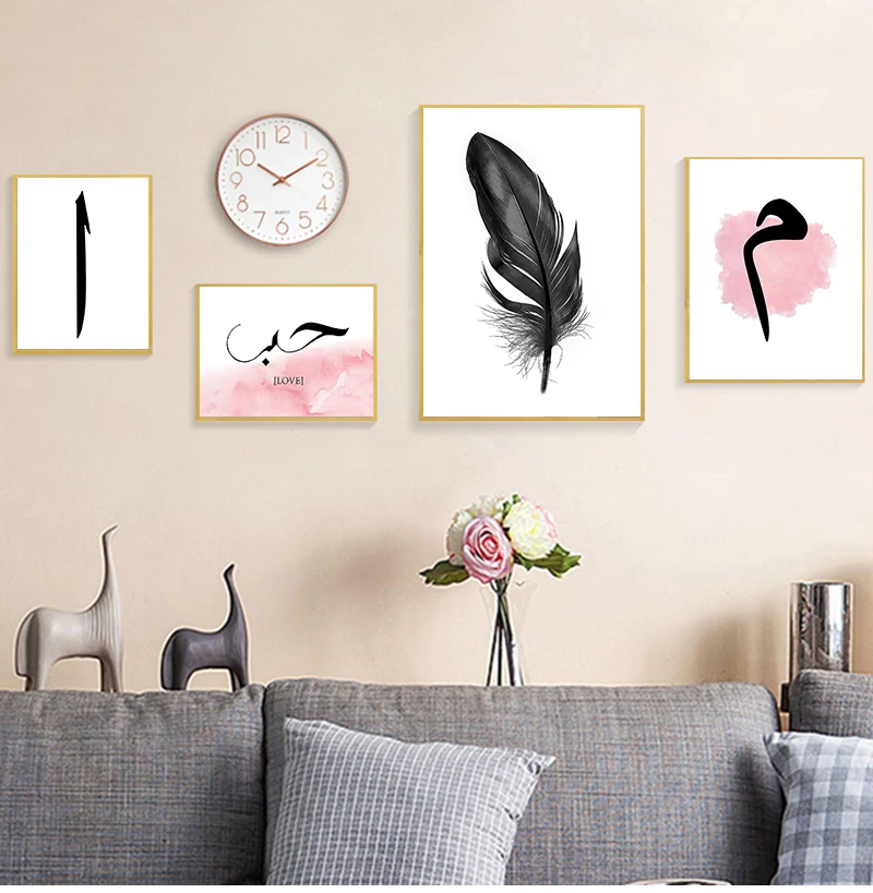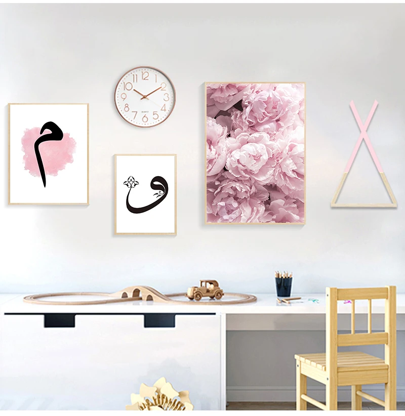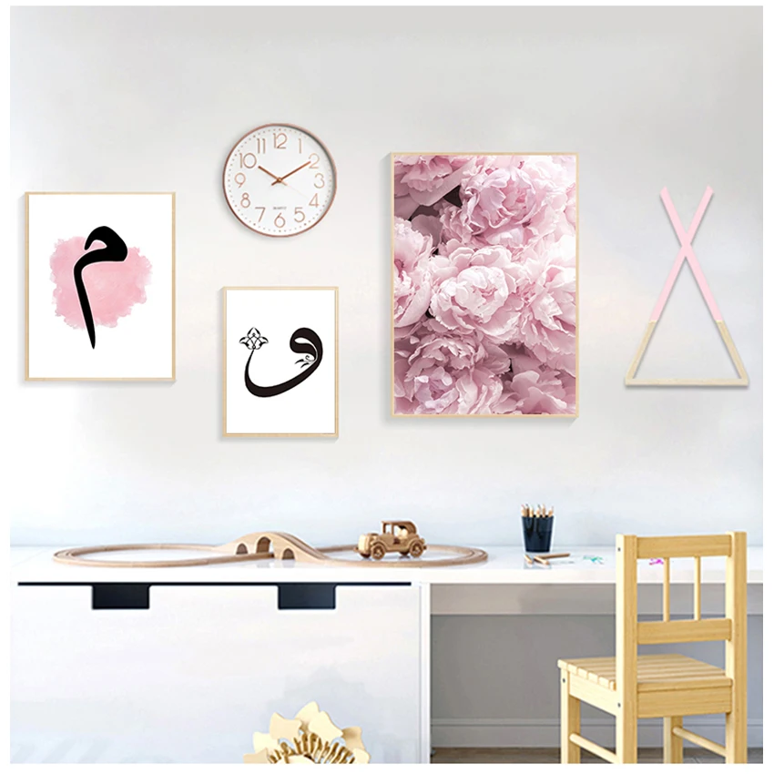 Печать Минималистичная декоративная живопись Домашний декор исламские вдохновения настенная Картина на холсте скандинавский розовый цветок перо