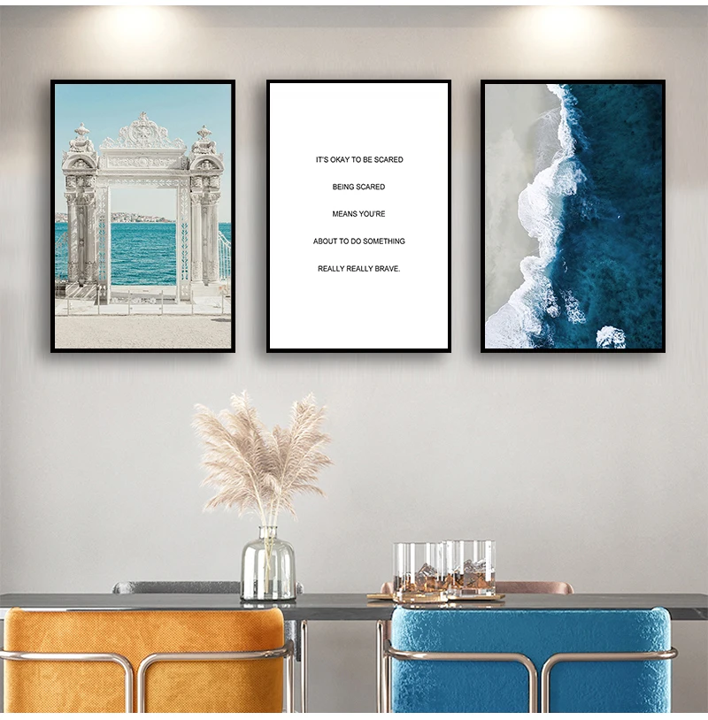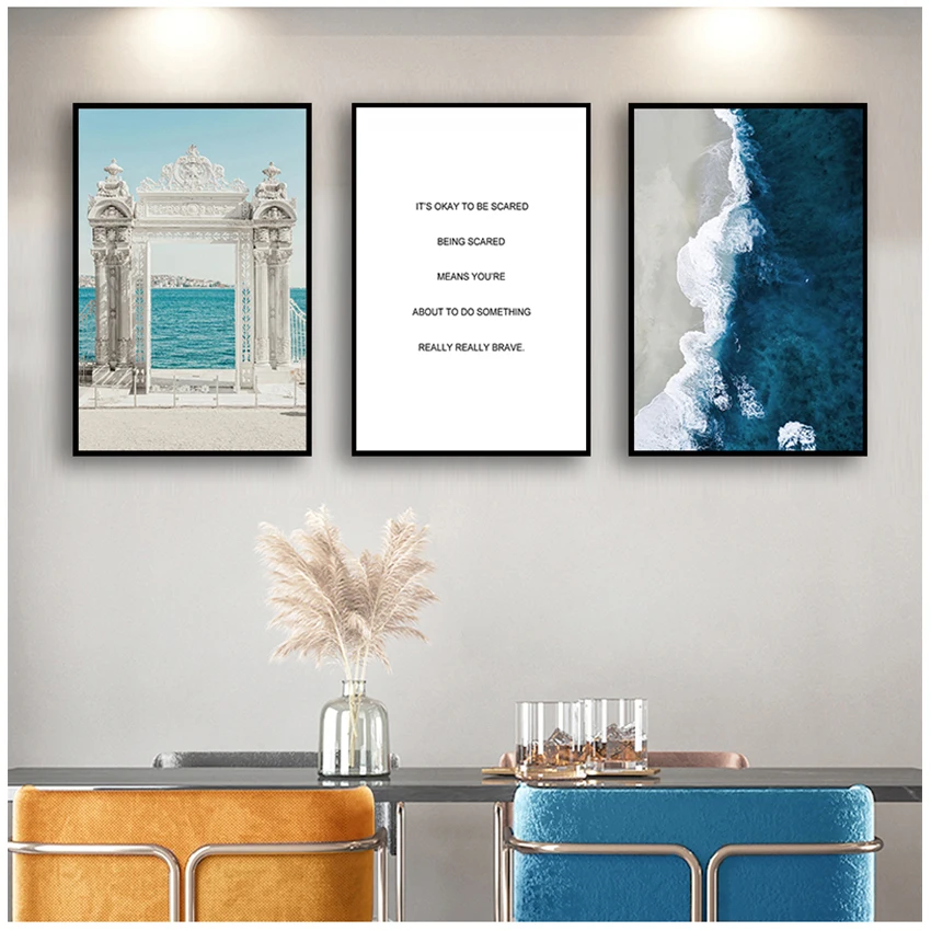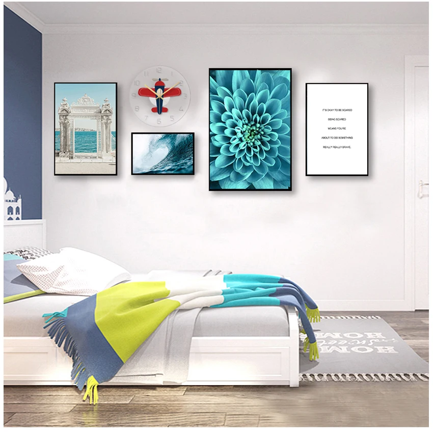 Скандинавская искусственная картина, морская стена с голубыми цветами, морской Пляжный Пейзаж, печать на холсте, картина в скандинавском стиле