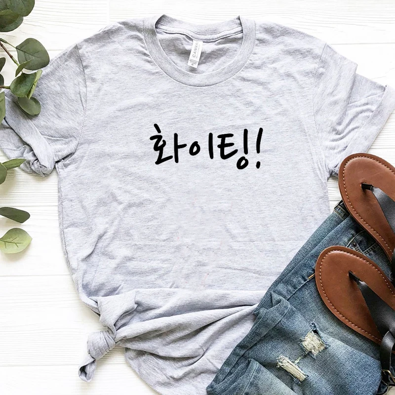 Женская футболка из хлопка, с принтом надписи в Корейском стиле