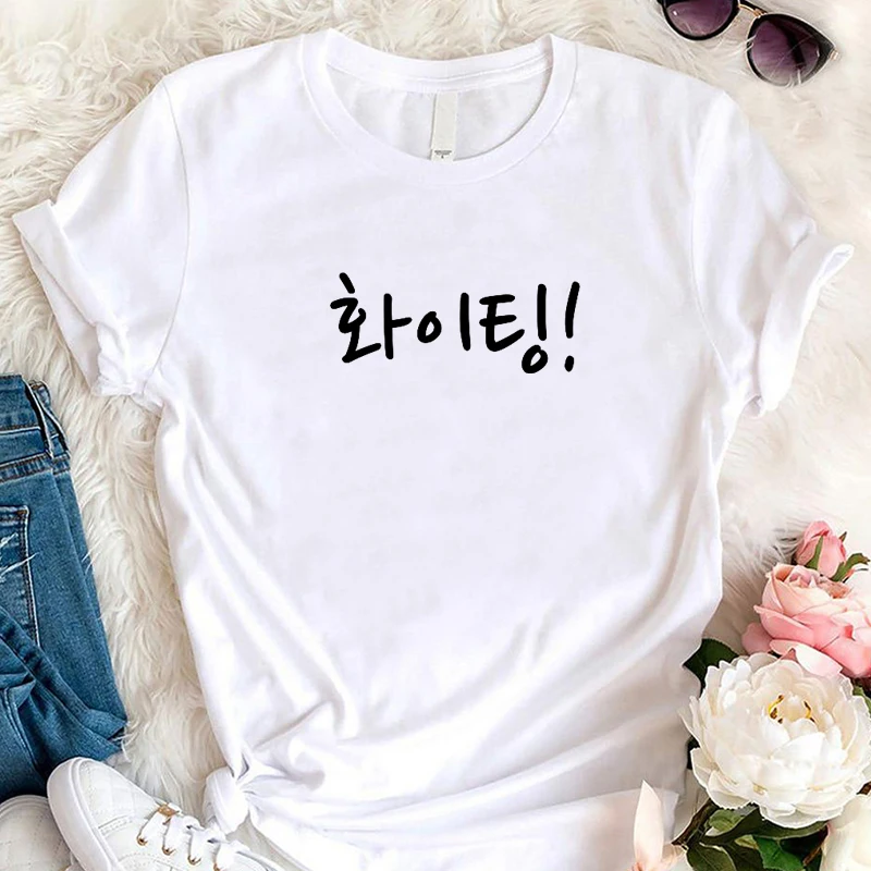 Женская футболка с буквенным принтом в Корейском стиле; Kpop; Графический Топ; Kdrama Fans; Женские футболки из хлопка; Большие размеры; Топы; Прямая поставка