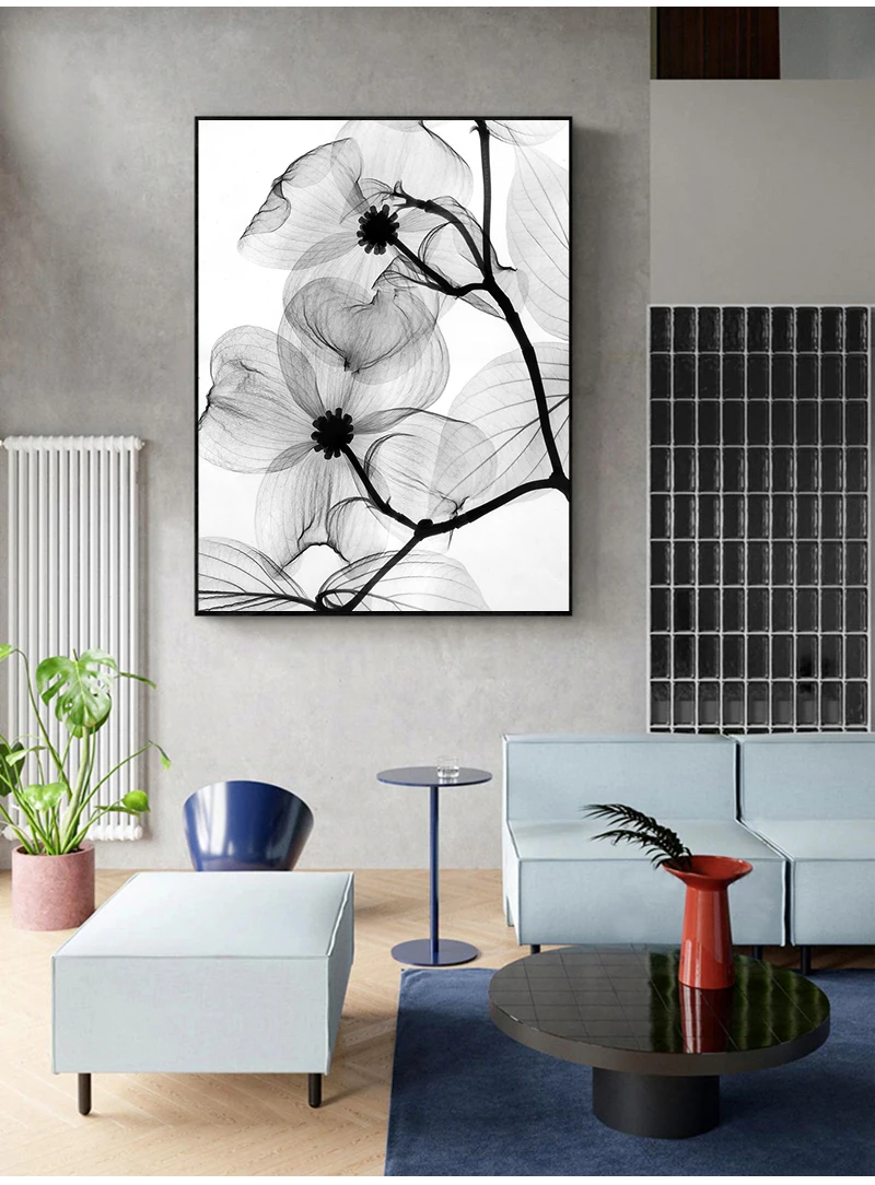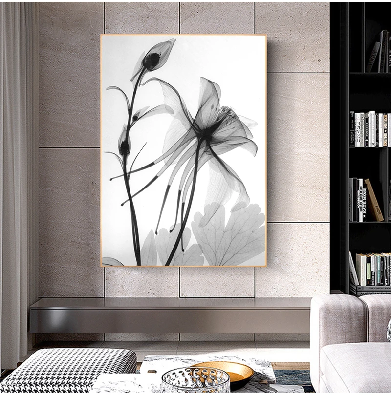 Настенная живопись, декоративная картина, домашний декор, скандинавские черные, белые растения, абстрактные цветы, холст, плакаты, холст, печать, минимализм