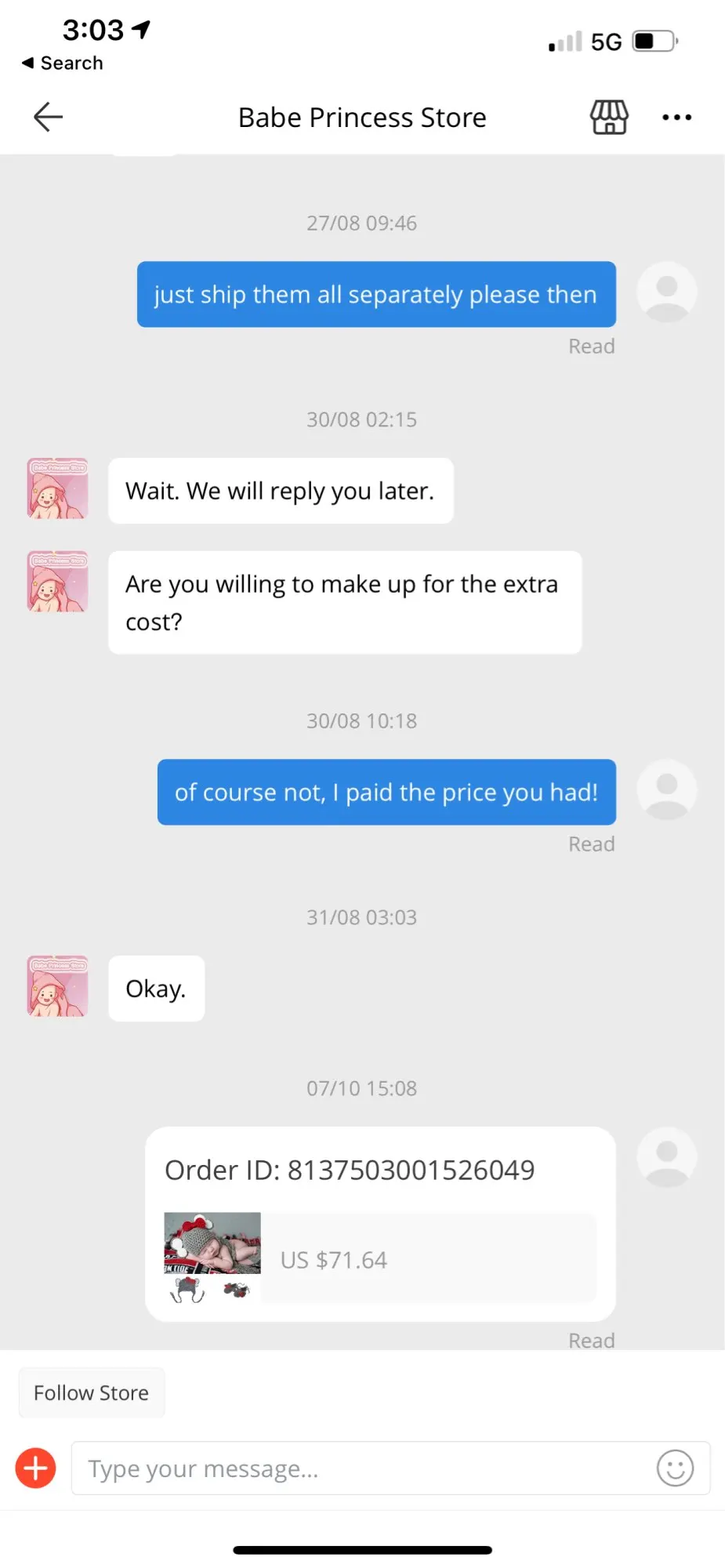 Страшный продавец! Я разместил два заказа в конце августа, стоимость заказов была $615,37 и $71,64. Во-первых, продавец потребовал заплатить больше, объясняя, что доставка нескольких предметов стоит дороже, чем отдельно. Я попросить продавца отправить товары отдельно. Эта беседа была около второго заказа $71,64, никаких разговоров или проблем не было о первом заказе, который я разместил. Продавец отправил Ложные номера отслеживания, делая вид, что мои два заказа были отправлены. Я ждать до октября, а затем спрашивал, где мои заказы. Продавец сказал: «просто подайте заявку на возврат средств». Что означает «подать заявку на возврат средств»? Вы не сказали ни слова, что не собираетесь отправлять Мои заказы, вы держали мои деньги почти два месяца, и я не получил товар! Покупатели, будьте в курсе! Держитесь подальше от этого магазина, этот продавец не нуждается в вашем бизнесе. Невероятный опыт и ужасающий продавец!