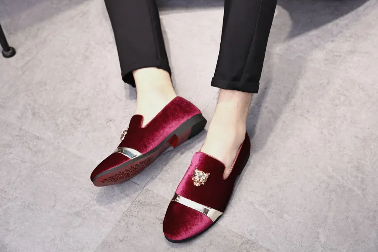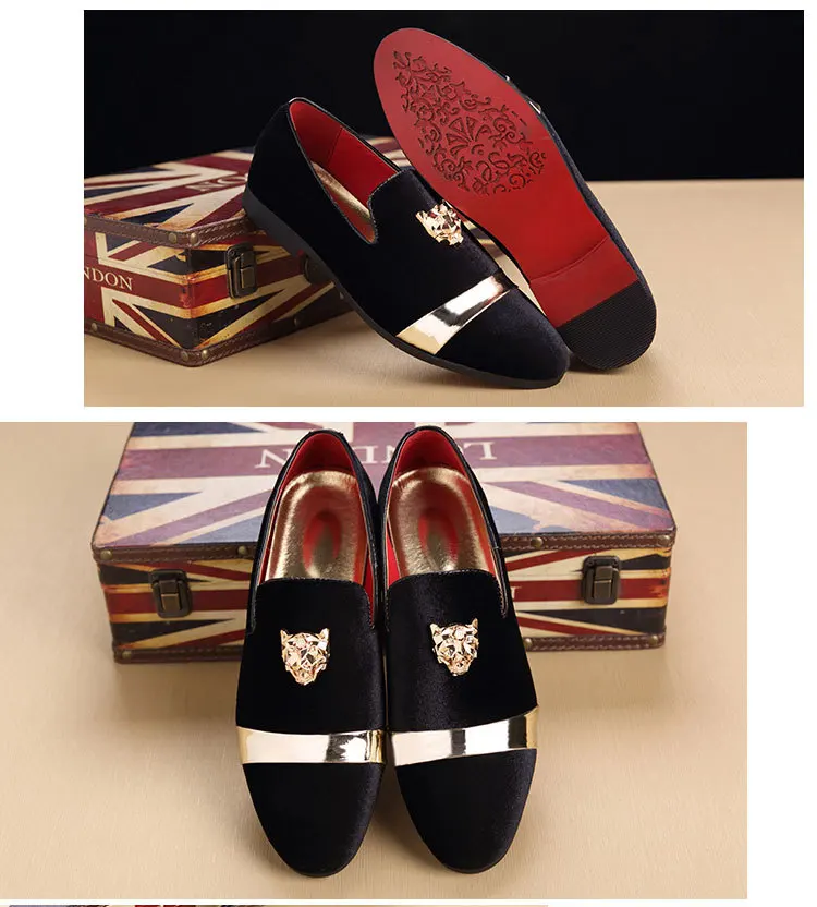 Мужские бархатные Мокасины, свадебные туфли с тигровым золотистым м...