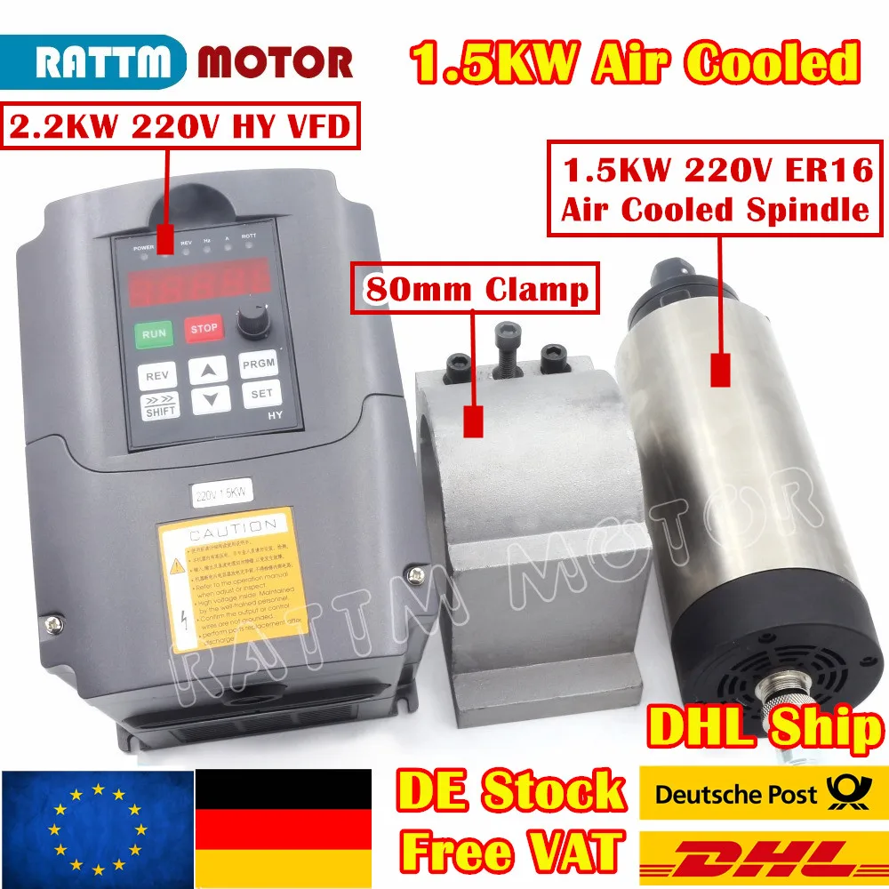 ЕС Бесплатная доставка 1.5KW 220V двигатель шпинделя воздушного охлаждения ER16 24000 обмин 8A 1.5KW HY VFD инвертор 80 мм зажим для фрезерного станка с ЧПУ