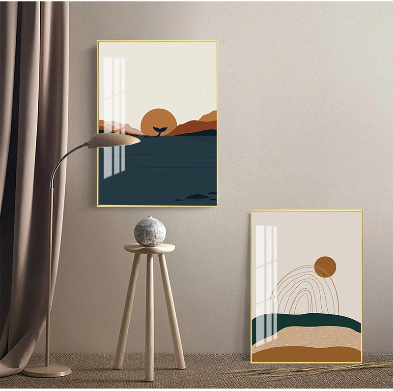 Настенный постер в стиле бохо с радужным принтом, домашний декор, абстрактная живопись, восход солнца, холст, Постер с морским Китом, винтажные художественные принты с солнцем