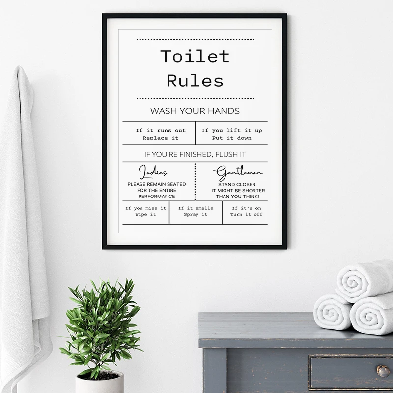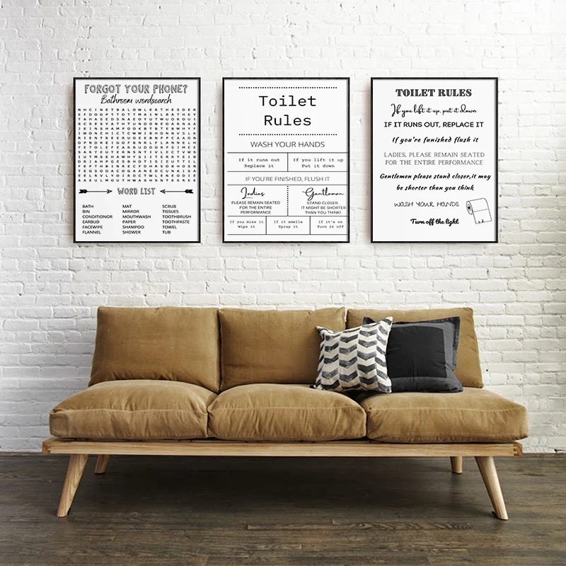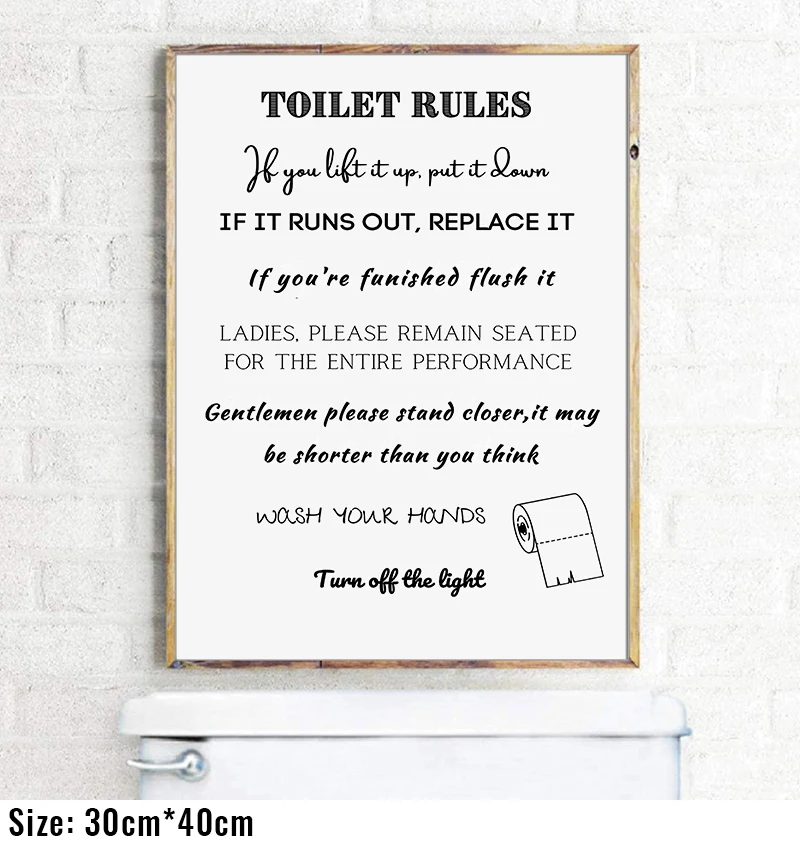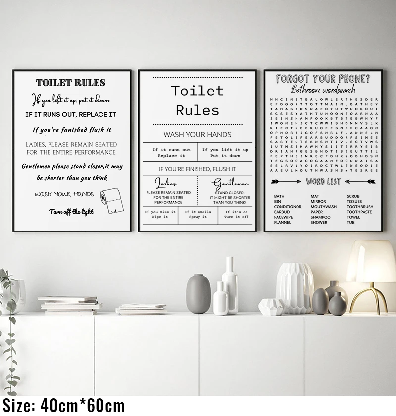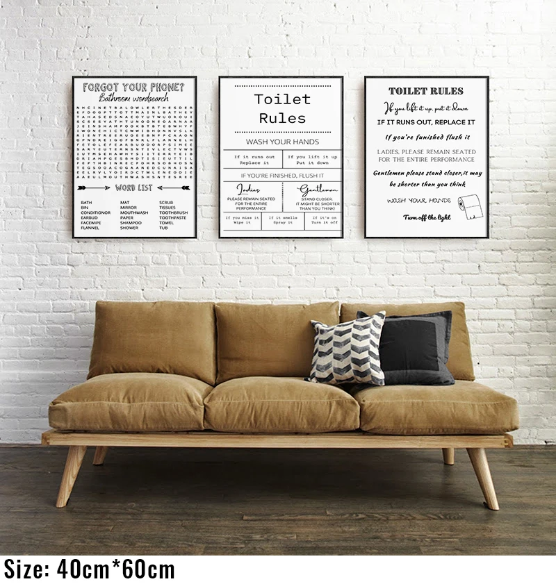 Картина черно-белая, Настенная картина для поиска слов в ванной, современный смешной постер Правила пользования туалетом, принт, Юмористическая картина, украшения для ванной комнаты