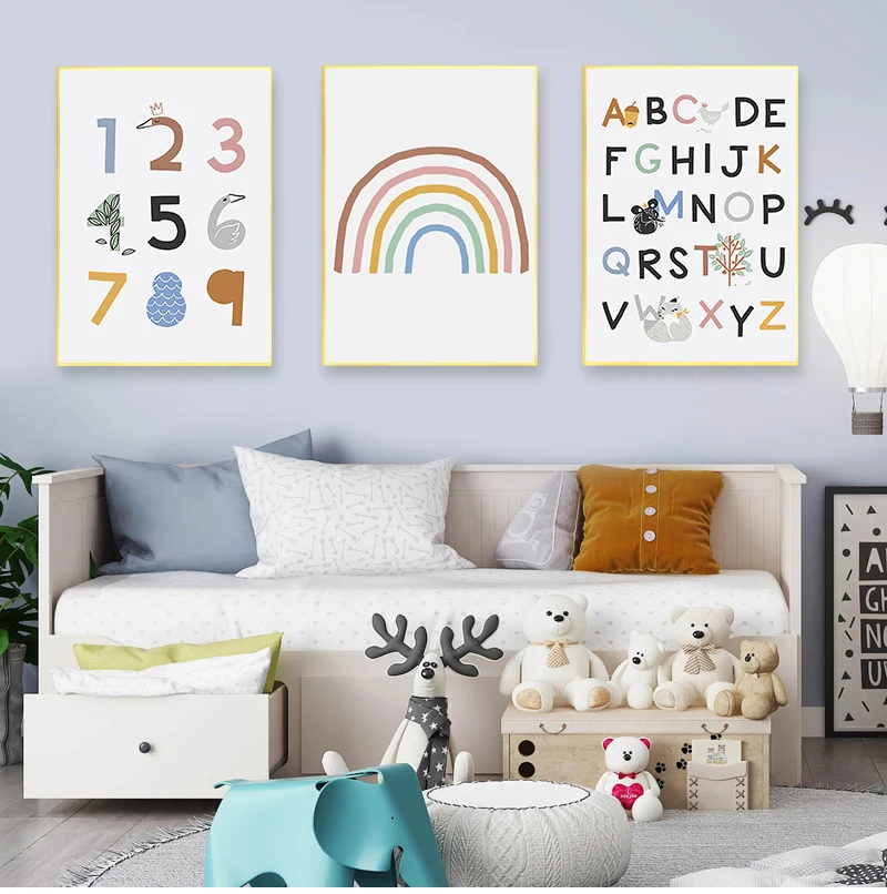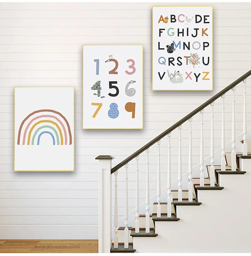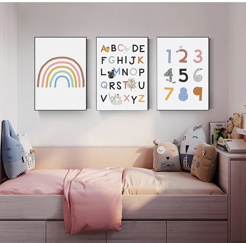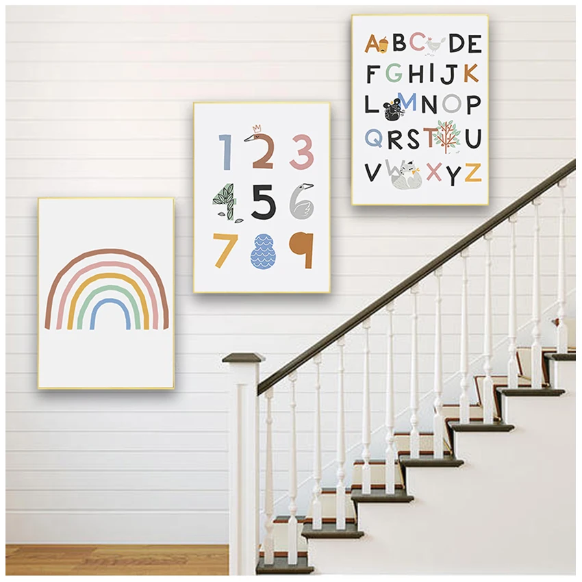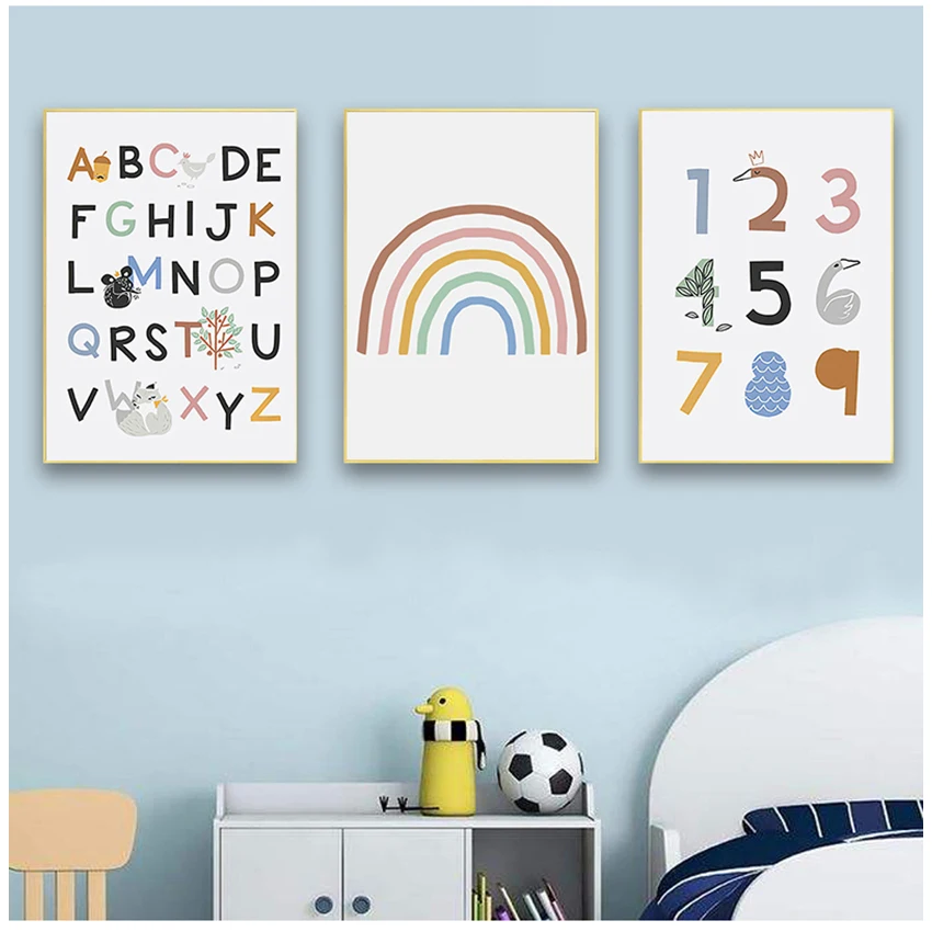 Настенная картина для детской комнаты, образовательная живопись, декоративная картина, АБС-плакат, буквы алфавита, плакаты и принты, радужная картина на холсте для малышей