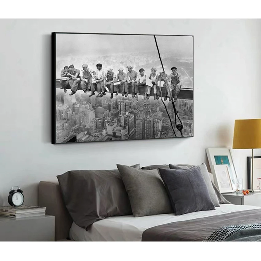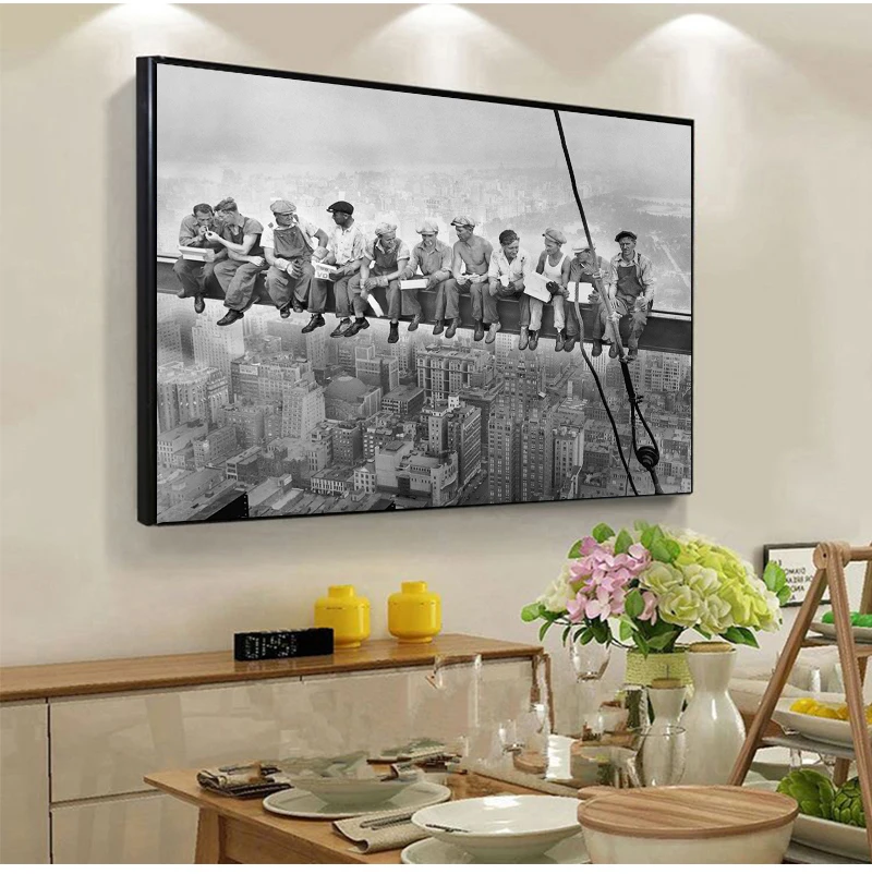 Настенная художественная картина, черно-белый постер, винтажная Картина на холсте, украшение для дома, Нью-Йорк, ланч на небоскребе