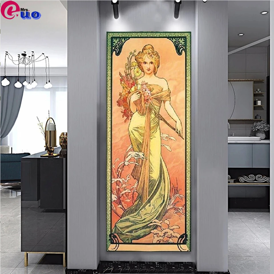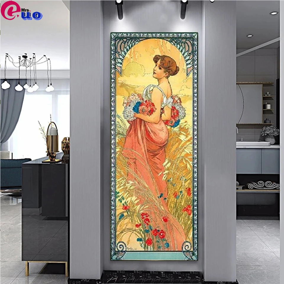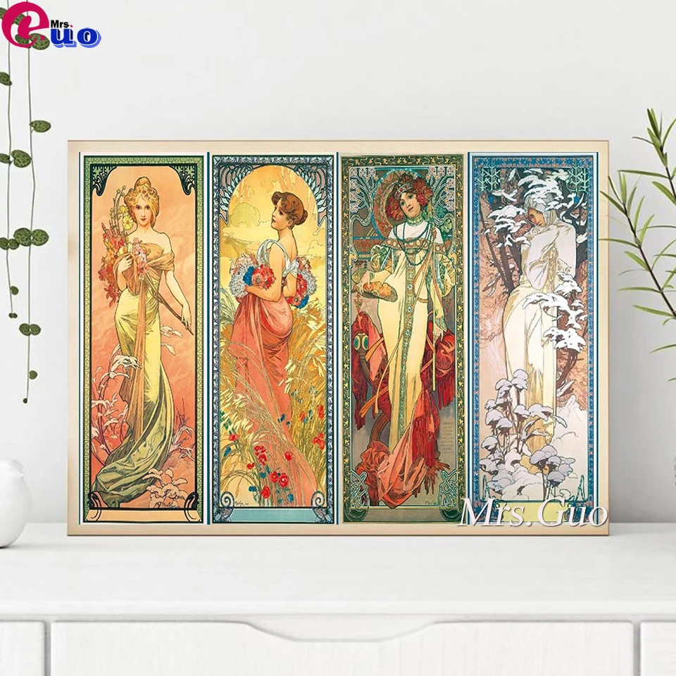 Алмазная картина Alphonse Mucha 5d Diy полностью квадратная круглая Алмазная вышивка крестиком набор художественная Ретро Женская Вышивка домашнее украшение