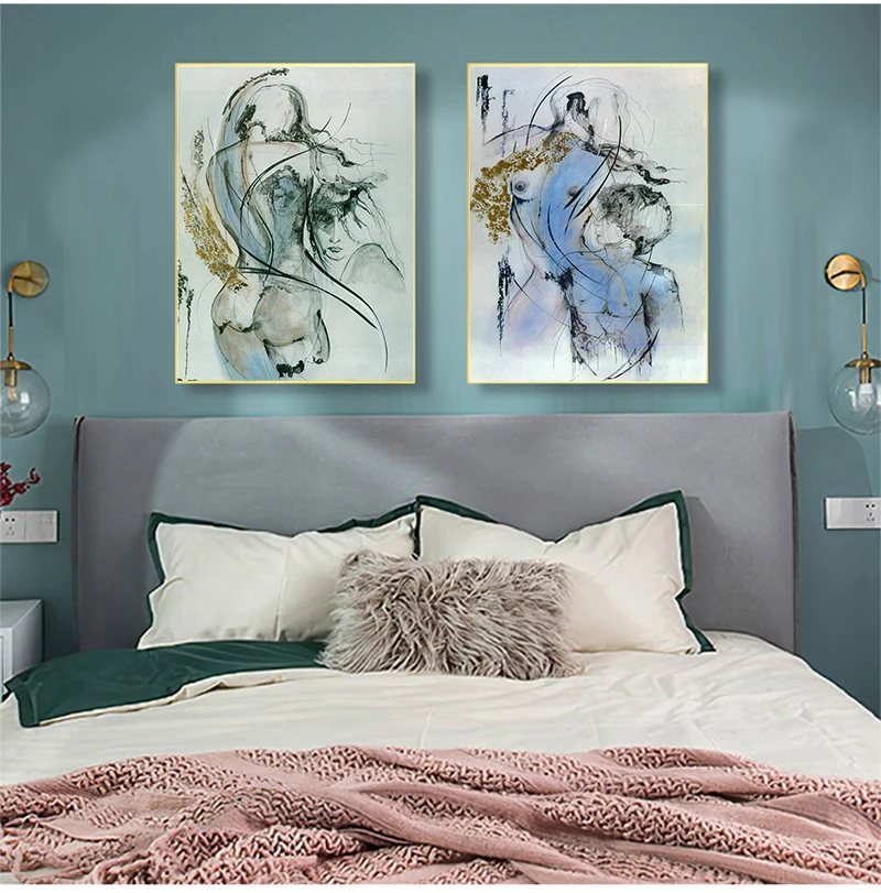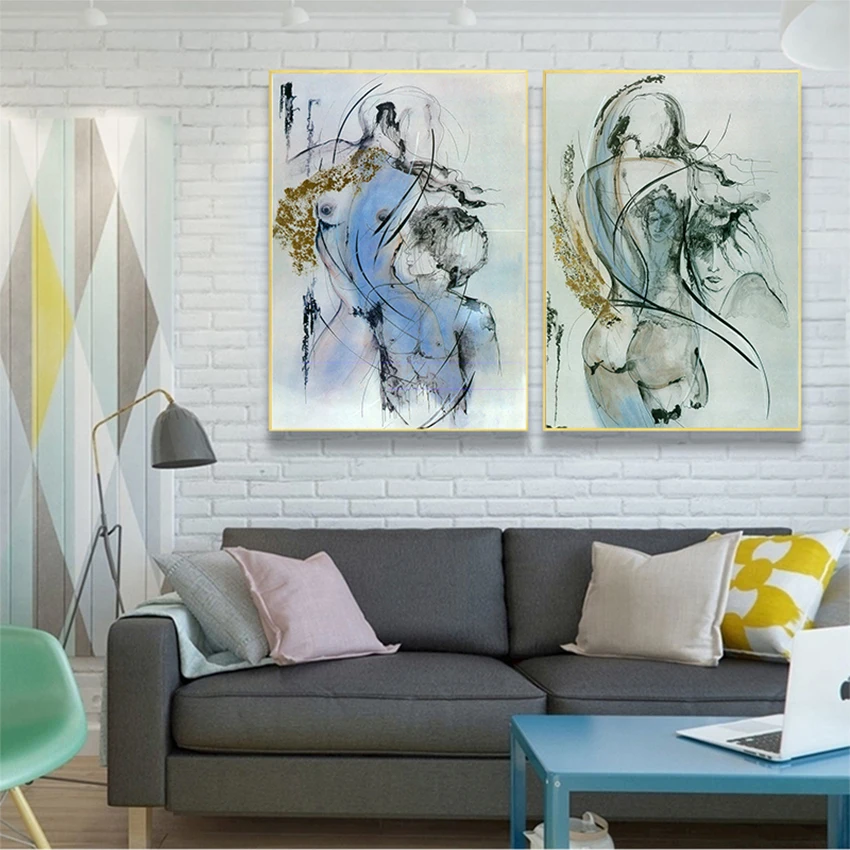 Домашний декор для спальни, печать без рамы, абстрактная привлекательная Картина на холсте, женский и мужской постер на теле, настенные картины