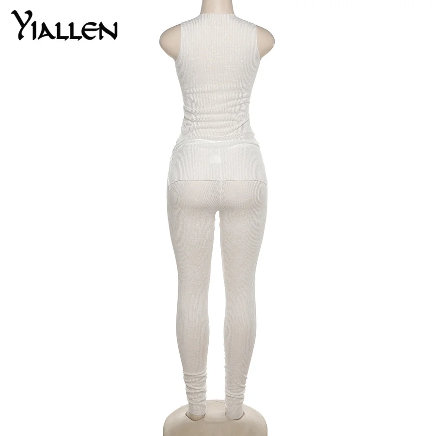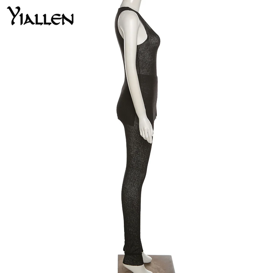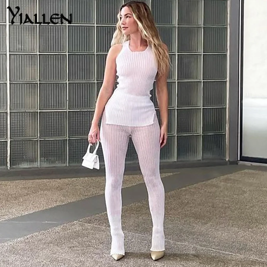 Комплект из двух предметов Yiallen, однотонный трикотажный женский прозрачный облегающий повседневный топ и брюки, подходящие наряды, одежда для активного отдыха, Лидер продаж