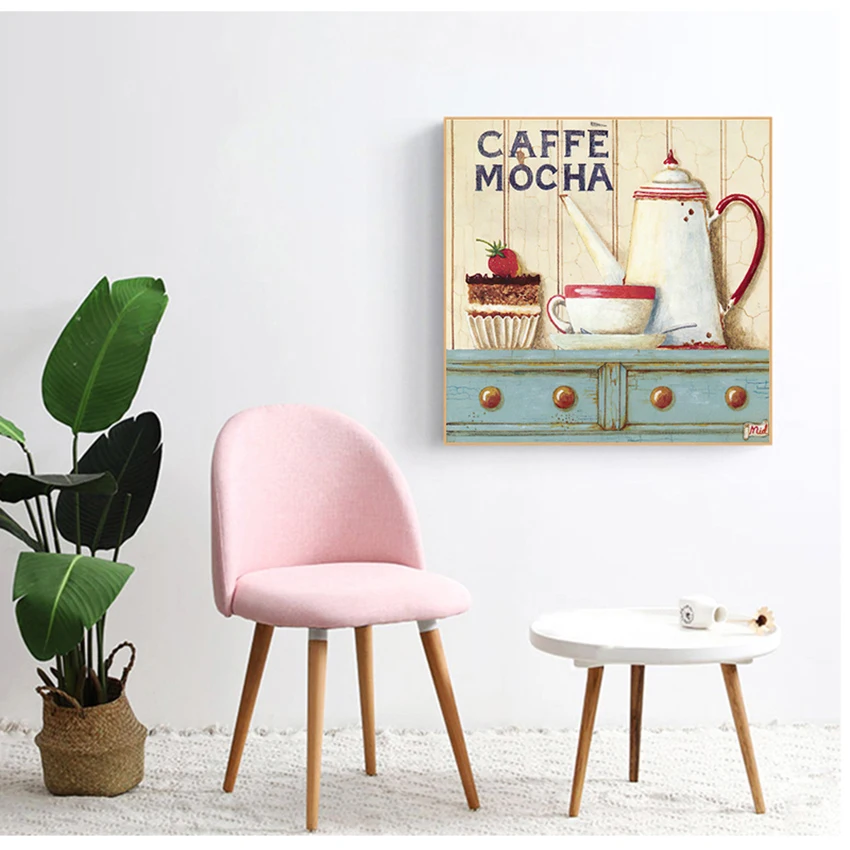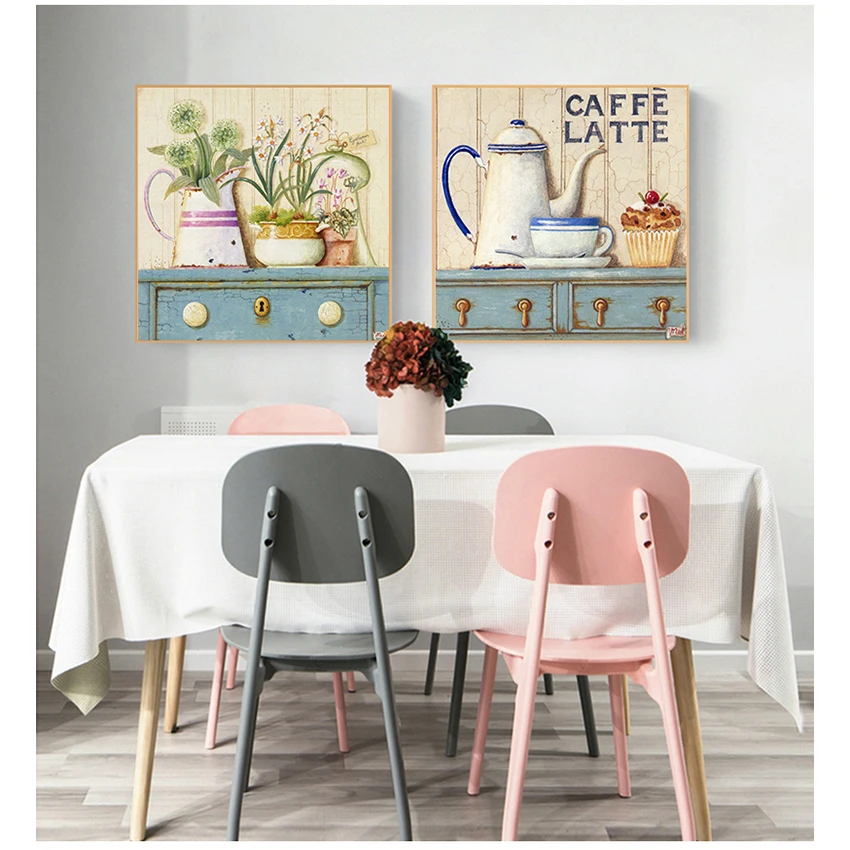 Настенная Картина на холсте с цветами для кухни, декор для комнаты в скандинавском стиле для девочек, декоративная картина ручной работы, цвет кофе, латте, акварель