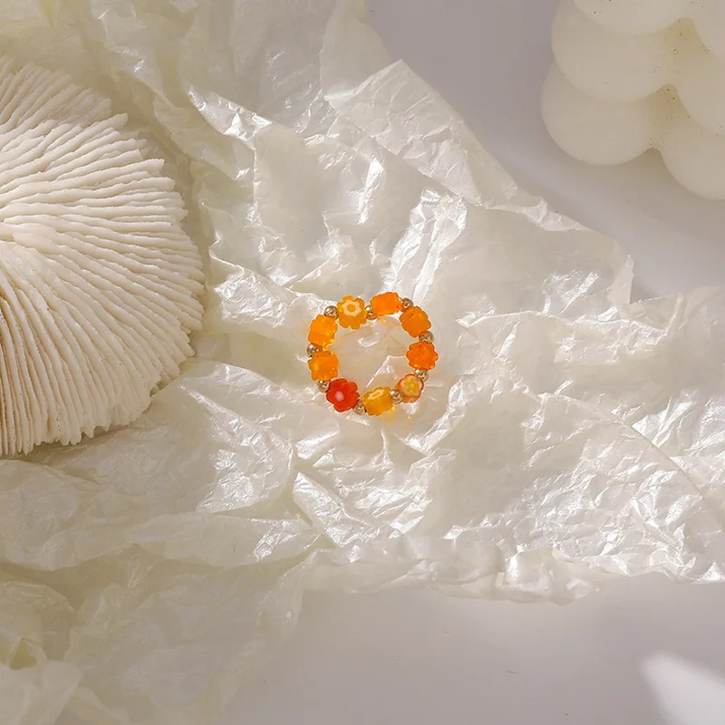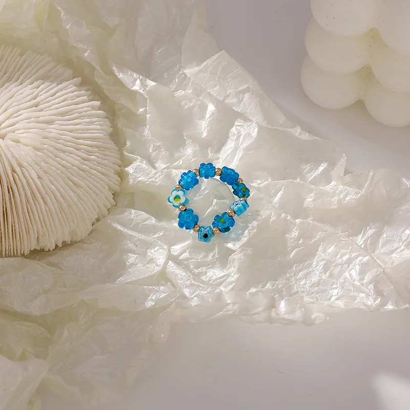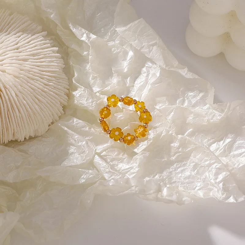 Винтажный в форме цветка акриловое кольцо для женщин; Босоножки, украшенные бисером цепь Регулируемые кольца женские шикарное ювелирное изделие, подарок