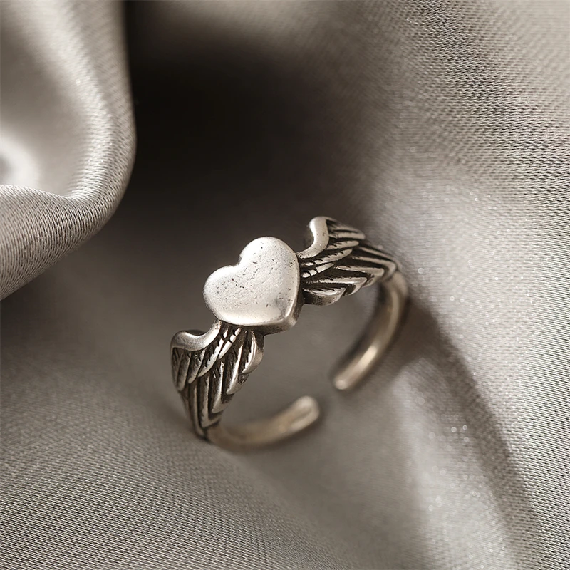 Винтажные посеребренные кольца кольцо с крыльями ангела для женщин,...