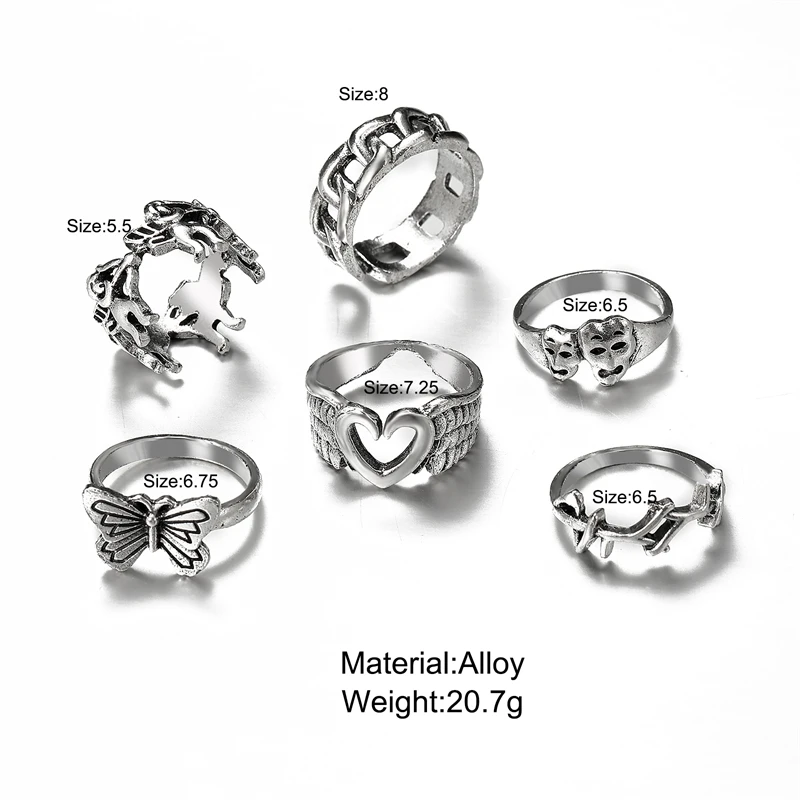 Кольцо женское в готическом стиле, с бабочкой, ангелом, 5 шт.компл.