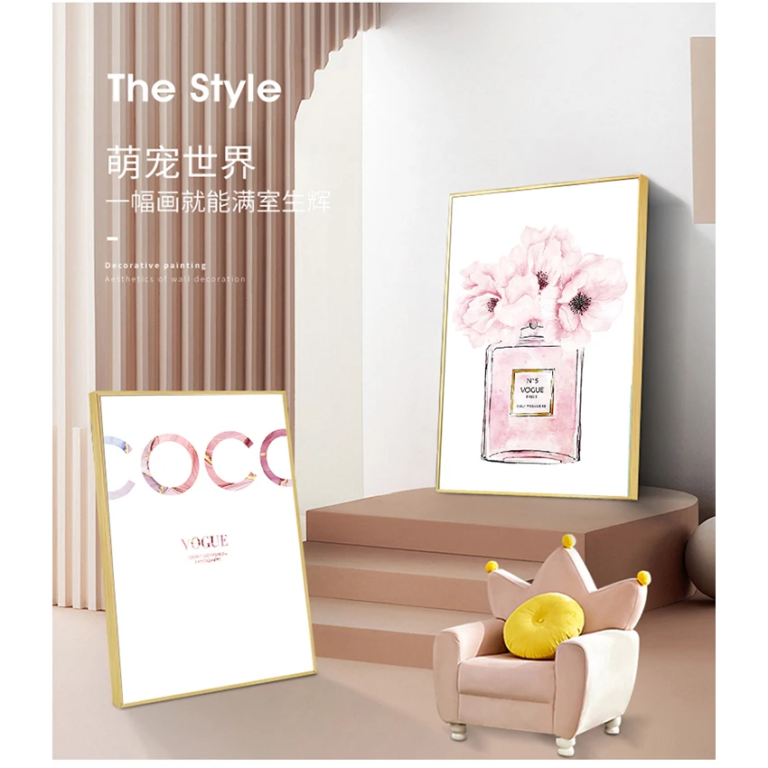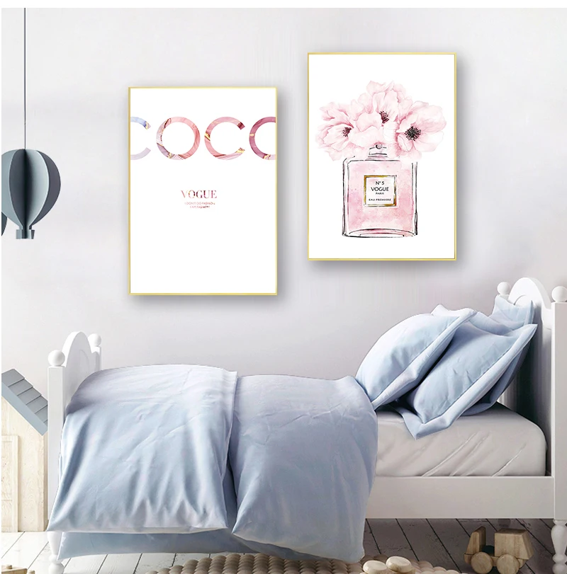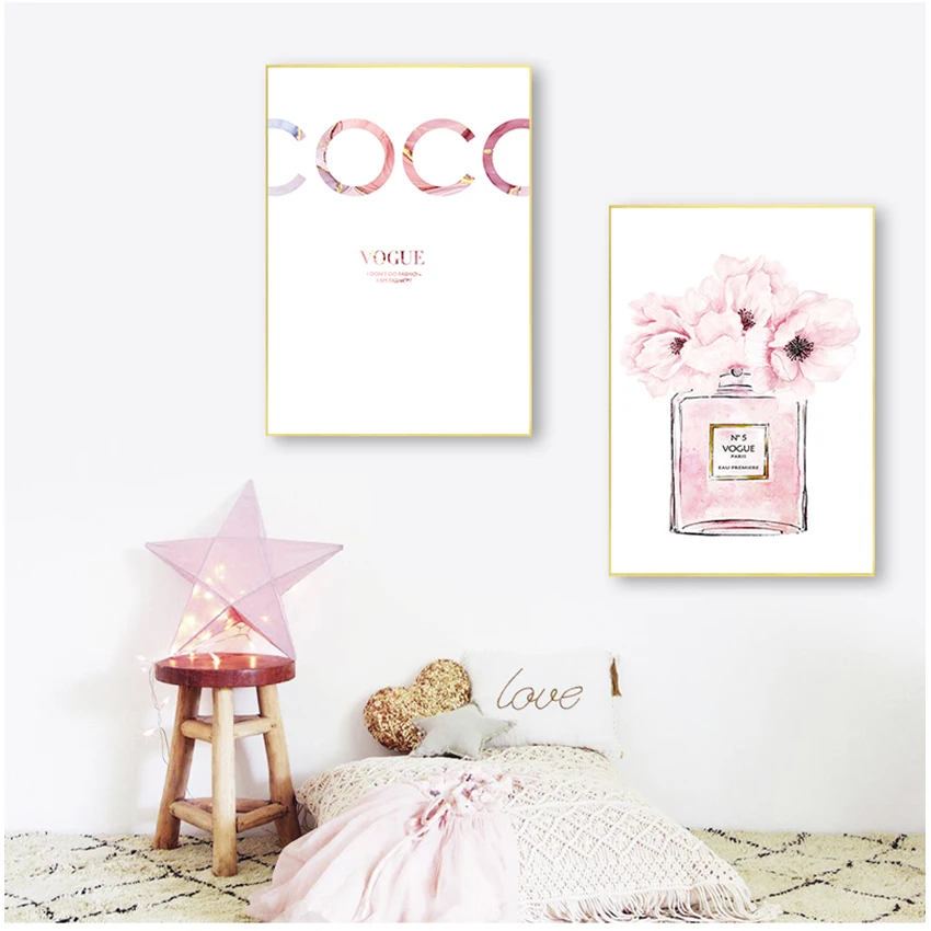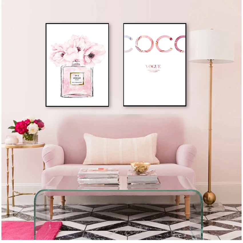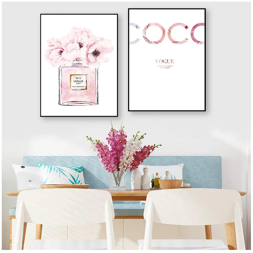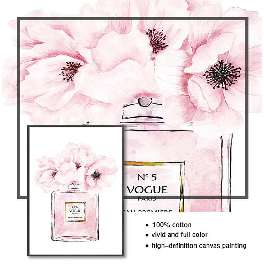 Флакон картина настенные картины для декора спальни Абстрактная Картина на холсте парфюм Розовый пион плакаты и принты цитаты парфюм