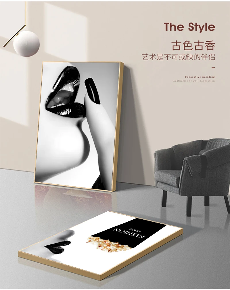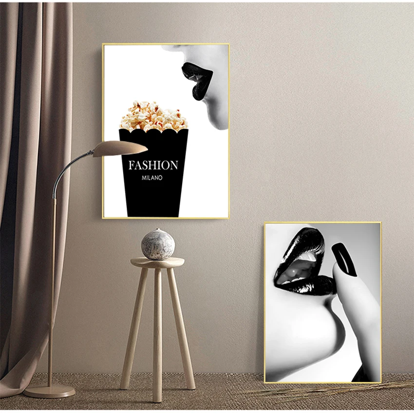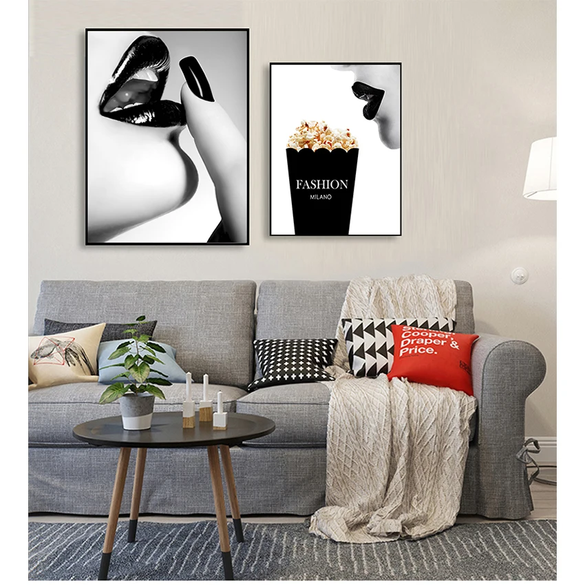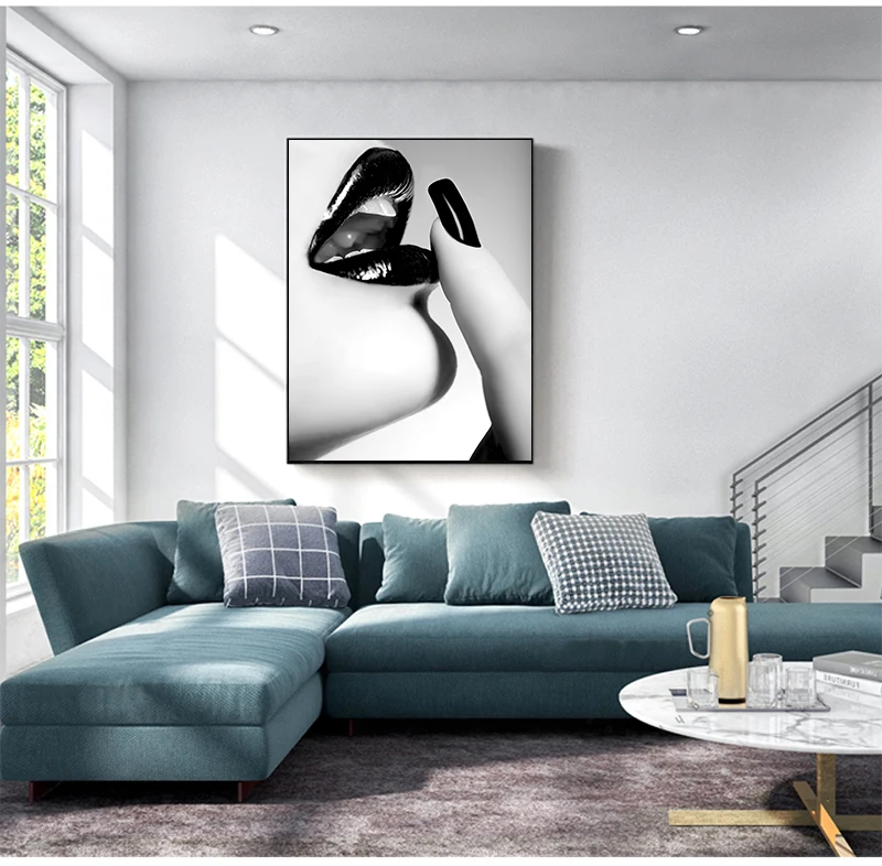 Домашний декор, настенные картины для гостиной, Картина на холсте с изображением чёрной и белой женщины, постеры с принтом губ