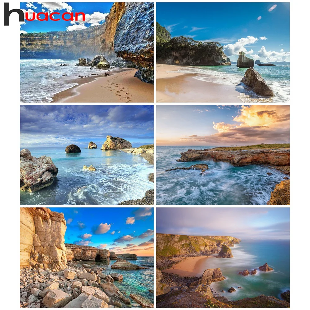 Алмазная живопись Huacan сделай сам, Приморский Пейзаж, домашний декор, вышивка крестиком, Пляжная мозаика из камня, настенные наклейки