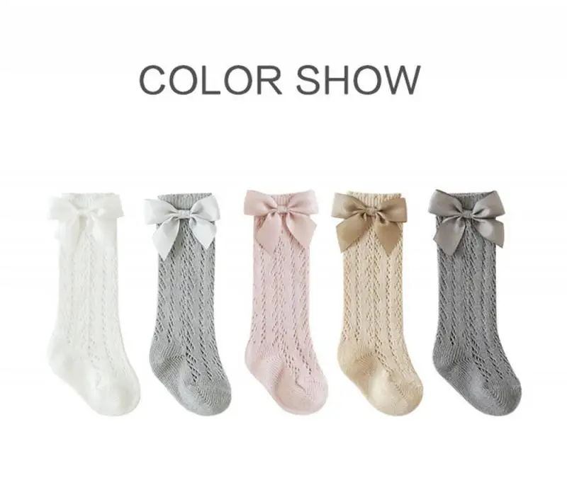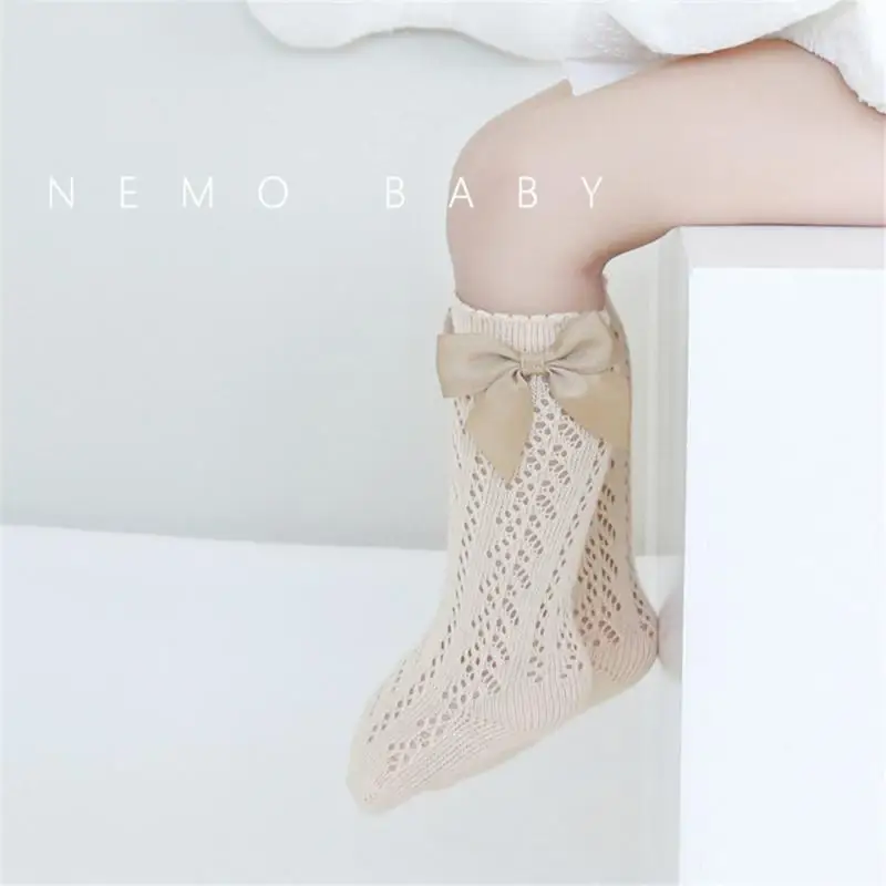 Детские носки 2021, летние тонкие сетчатые длинные носки в испанском стиле, носки принцессы с большим бантом для маленьких девочек от 0 до 5 лет