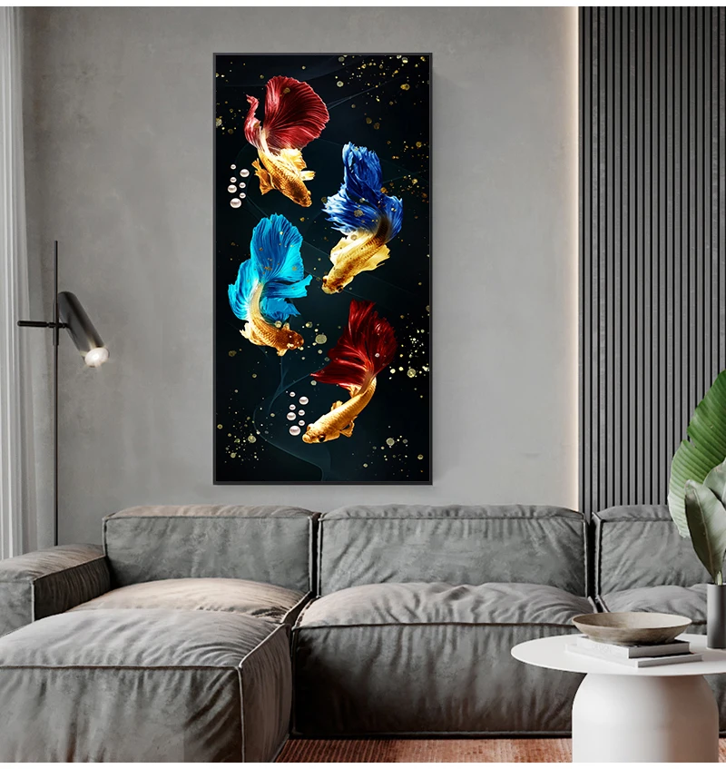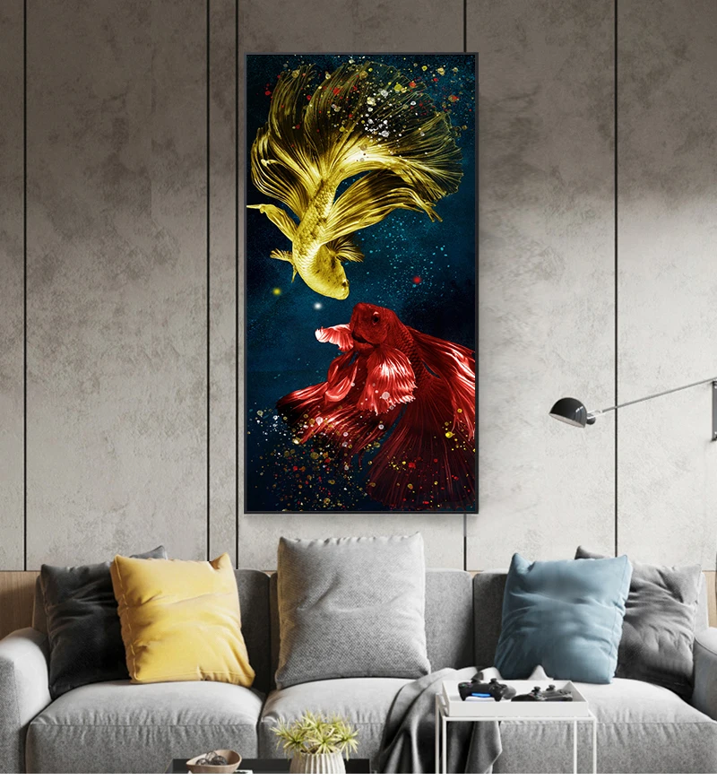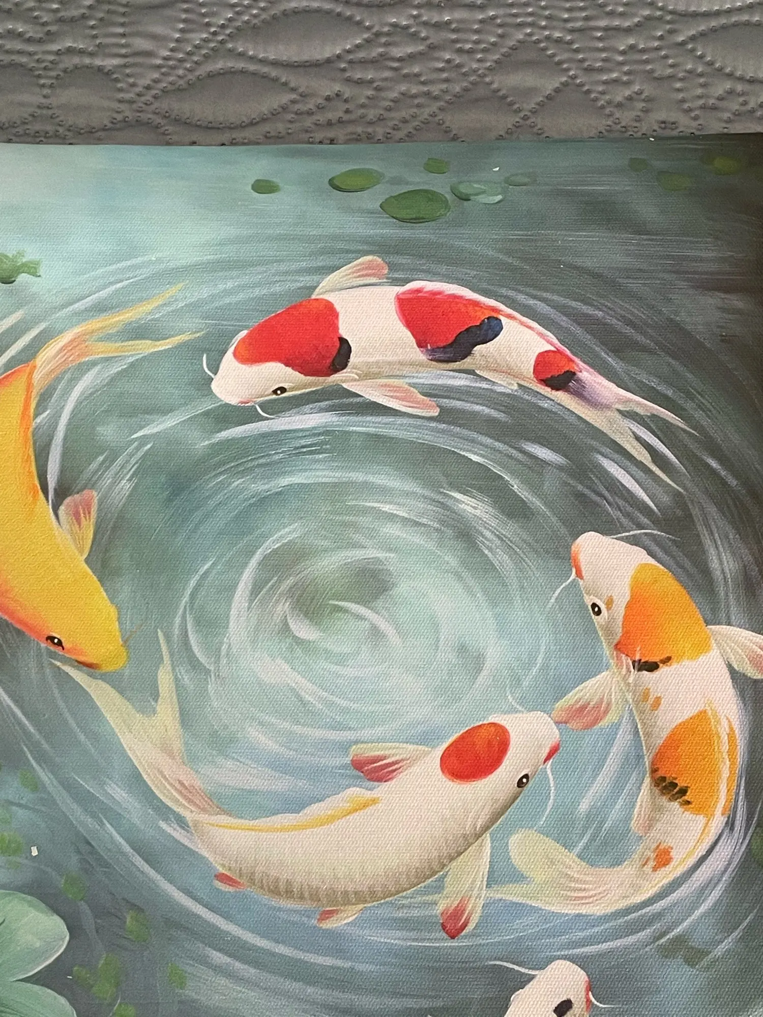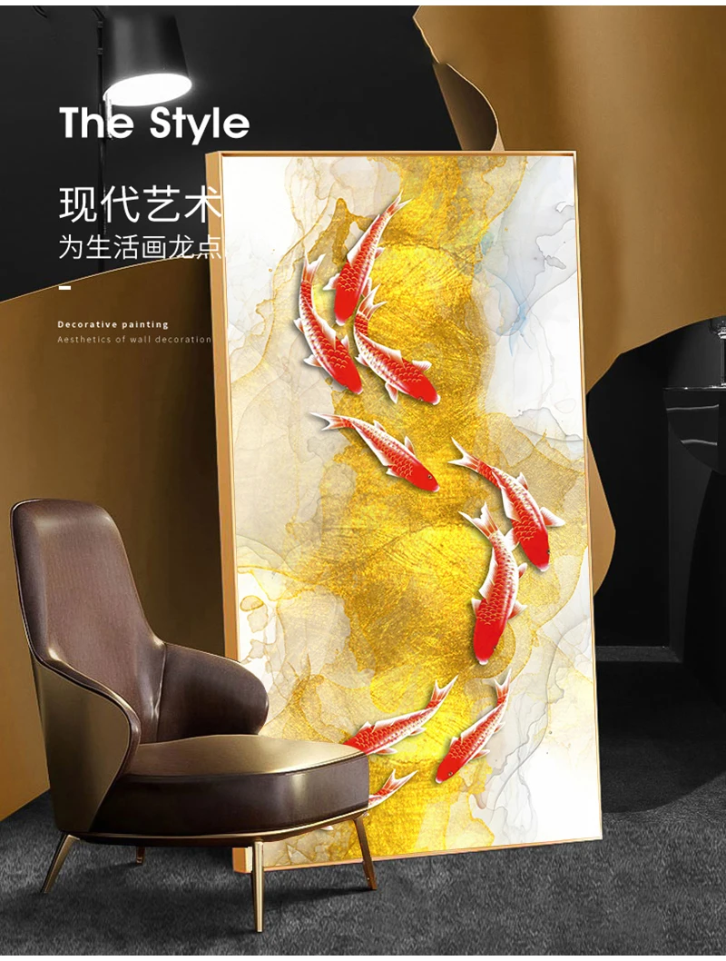 Комнатный домашний Декор без рамки, фэн-шуй, карп, лотос, пруд, Картина на холсте, настенное искусство для гостиной
