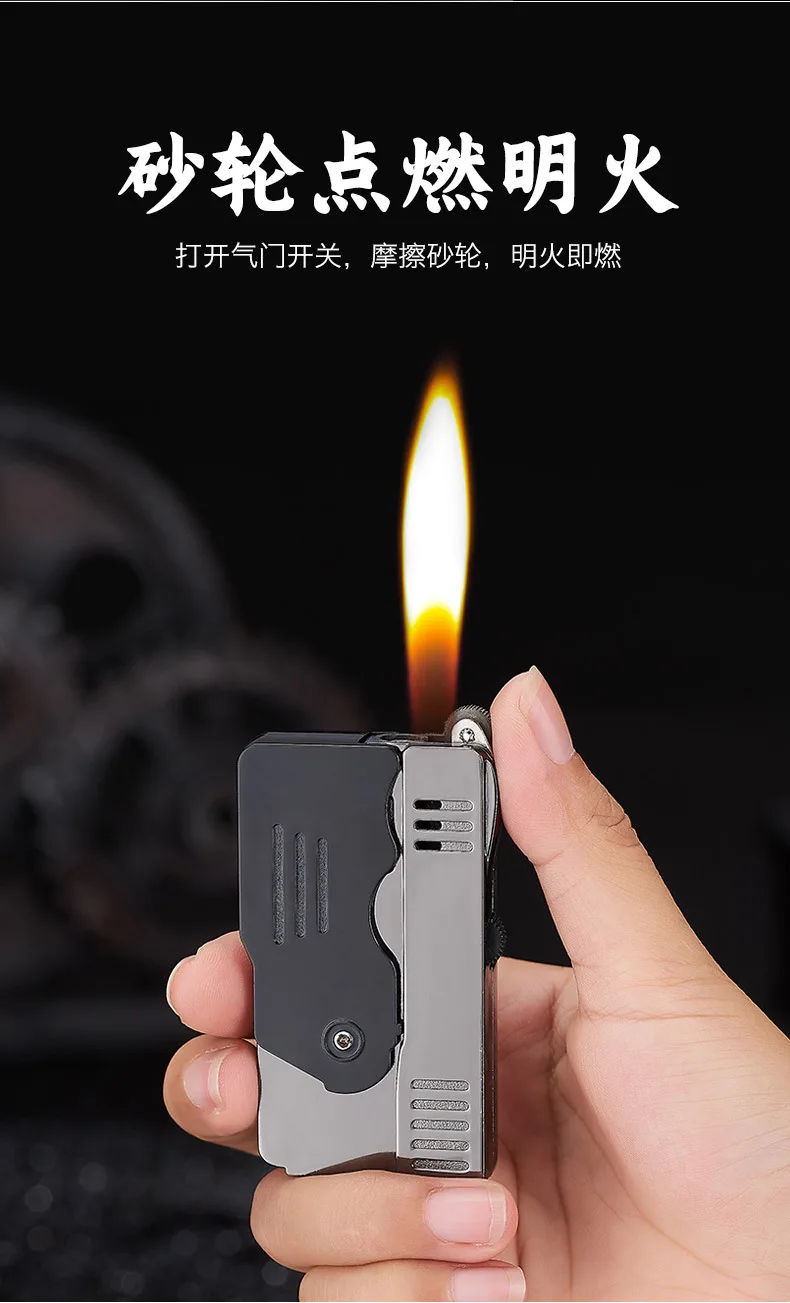 Креативная металлическая Бутановая газовая зажигалка с двойным огнем, забавная ветрозащитная Зажигалка для сигар с кремнем, маленький подарок