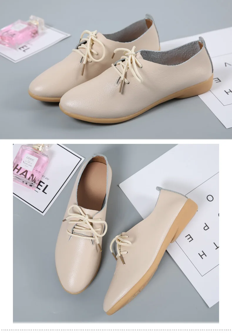 Летние женские туфли на плоской подошве; Белые кожаные туфлиUS $25,78