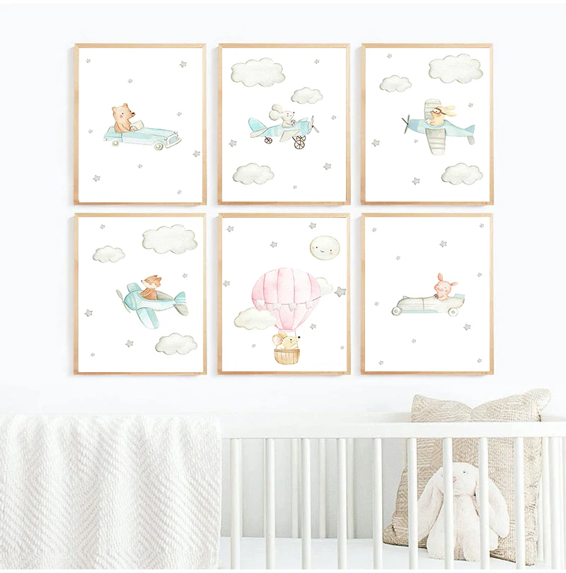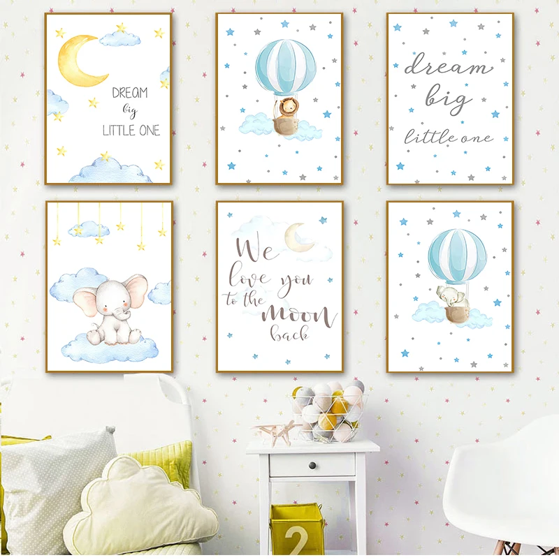 Принт для детской художественные декоративные картины на холсте для гостиной, настенные картины для девочек, украшение для мальчиков, постер для спальни, слон с животными