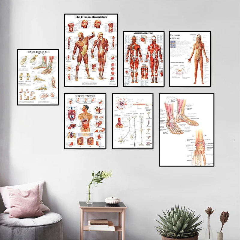 Настенная картина с изображением человеческого анатомии тела органных костей, плакат, Картина на холсте и печать, Настенная картина в стиле Куадрос, арт-деко, украшение для дома и комнаты
