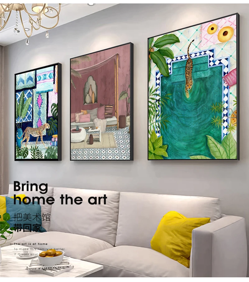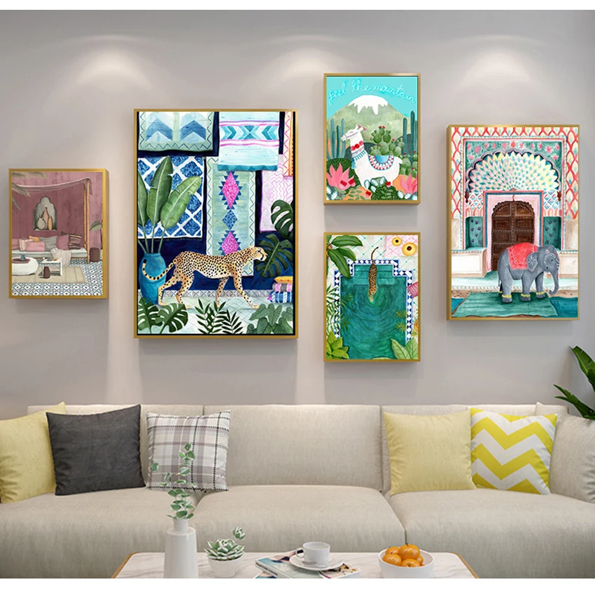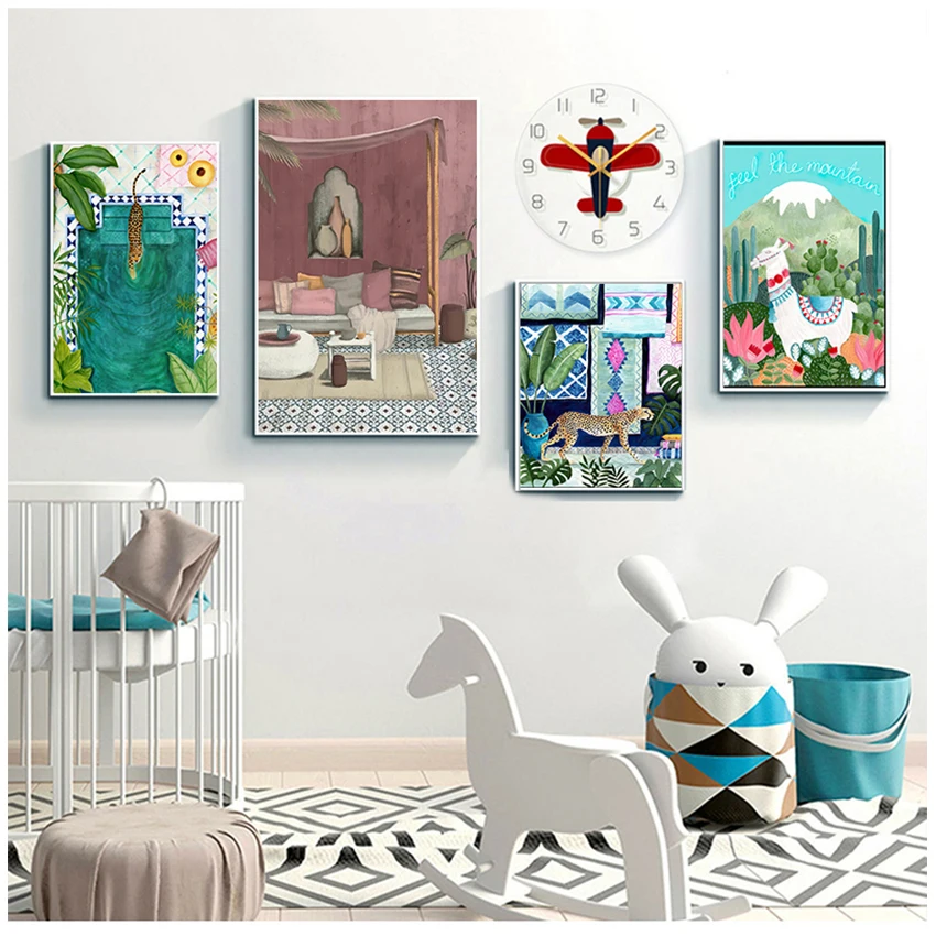 Картина на холсте, настенные картины для гостиной, домашний декор, марокканская гепарда, лама, леопард, джунгли, скандинавские плакаты и принты, настенное искусство