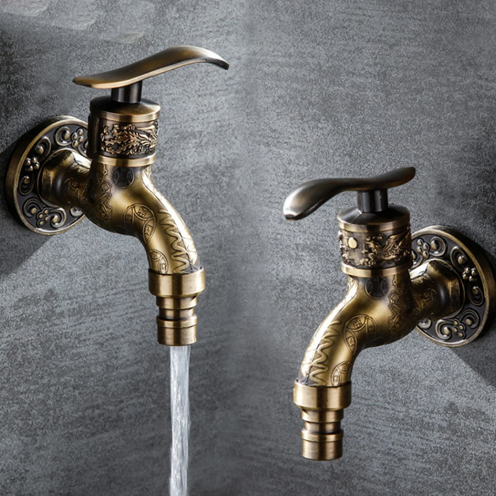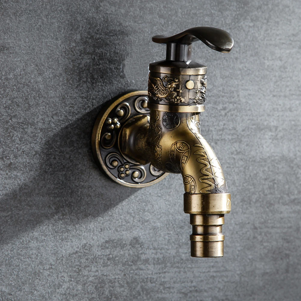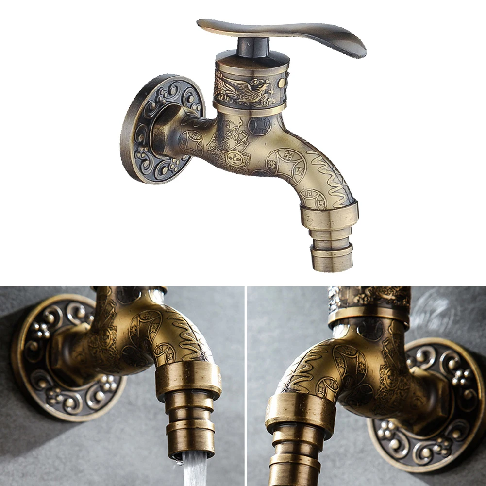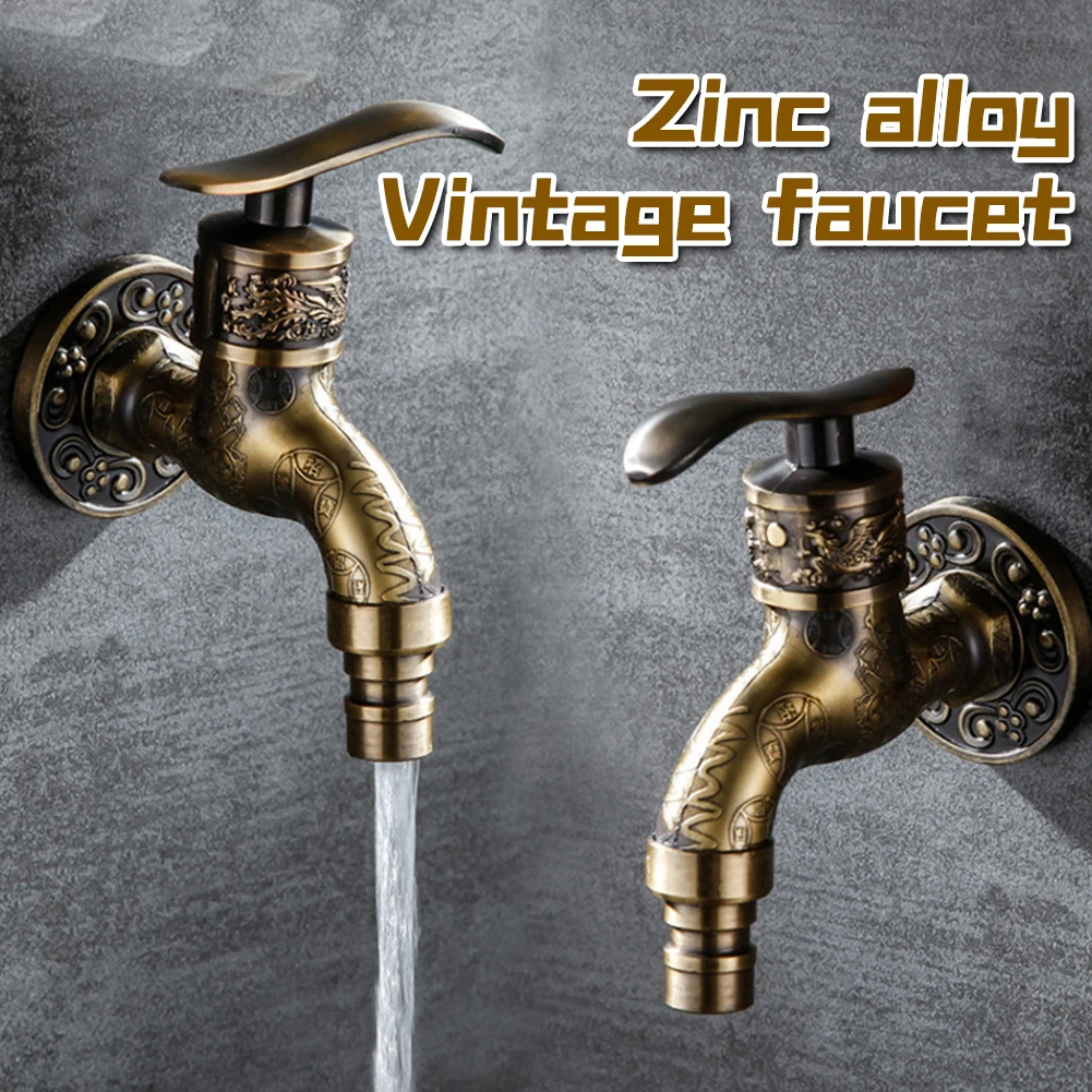 Винтажный садовый кран для мытья, кран для умывальника, резной настенный кран из цинкового сплава, античный декоративный кран для кухни, ванной комнаты, кран для раковины