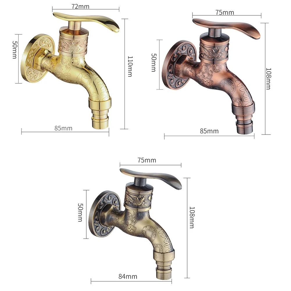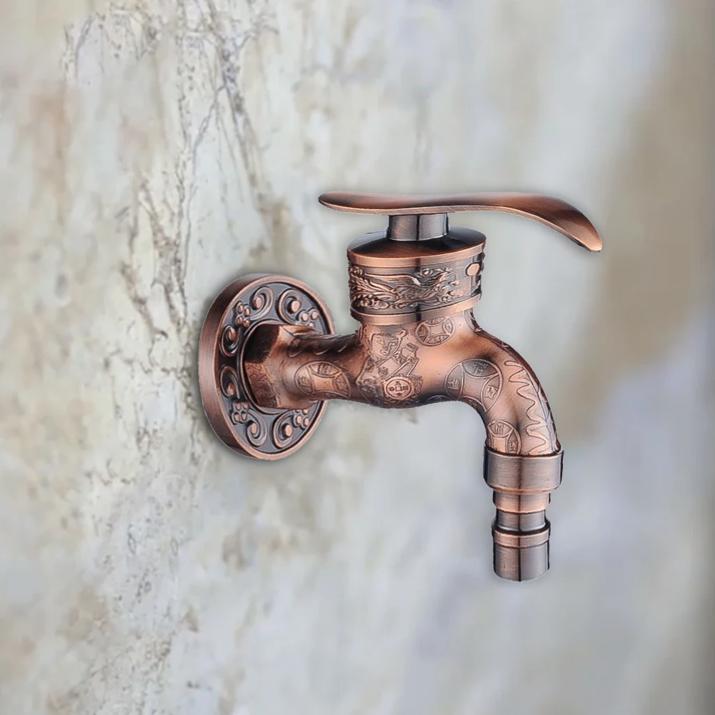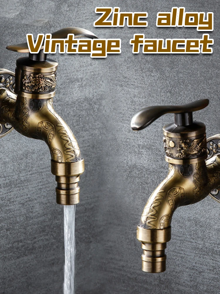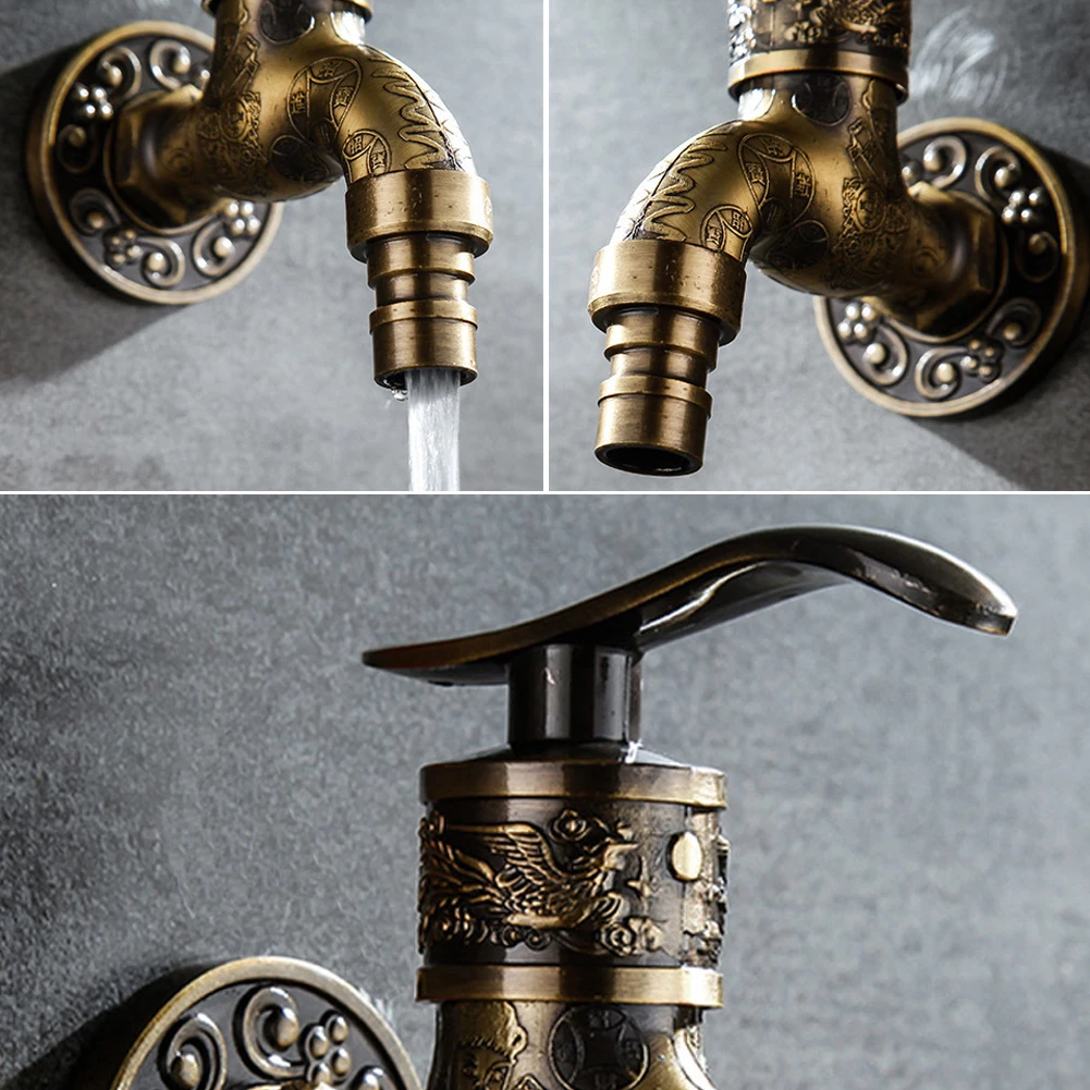 Винтажный садовый кран для мытья, кран для умывальника, резной настенный кран из цинкового сплава, античный декоративный кран для кухни, ванной комнаты, кран для раковины