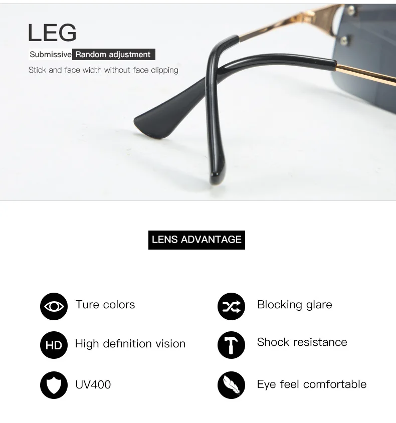 Солнечные очки без оправы для мужчин и женщин, прямоугольной формы,...