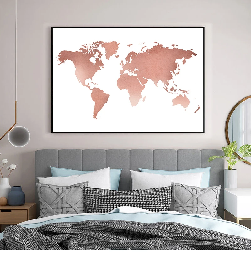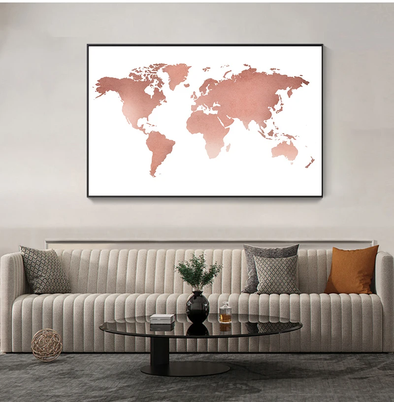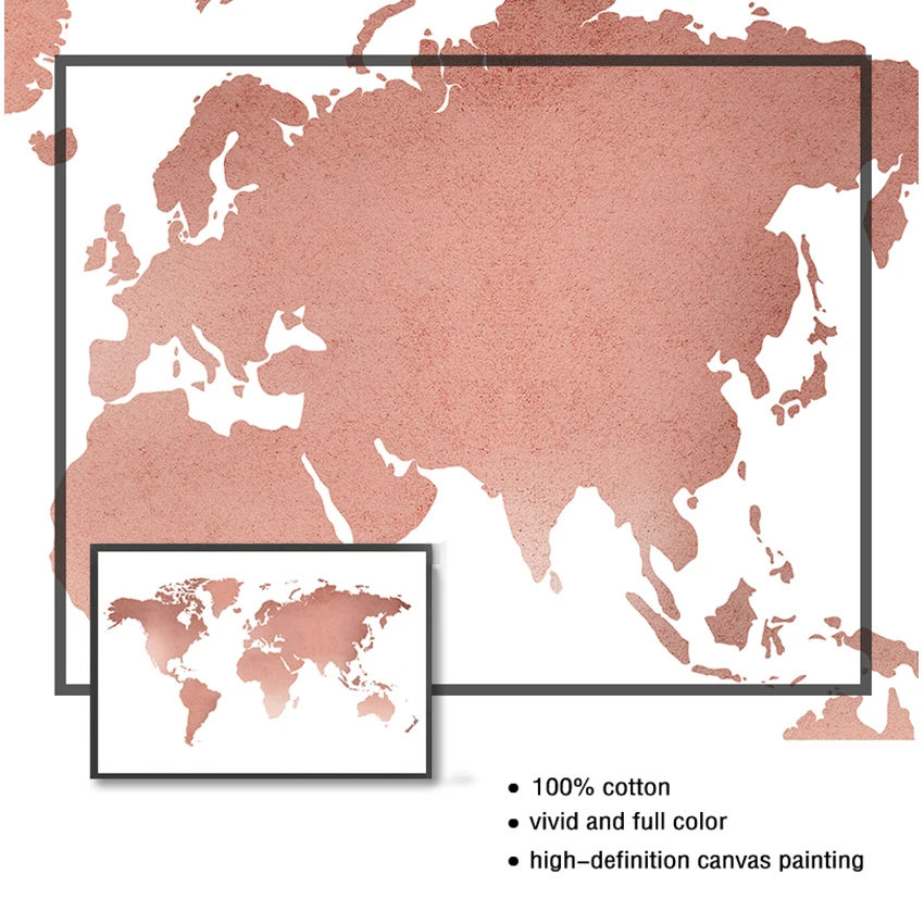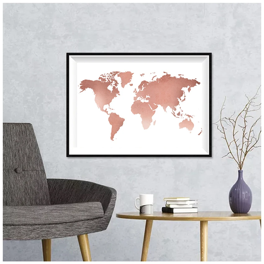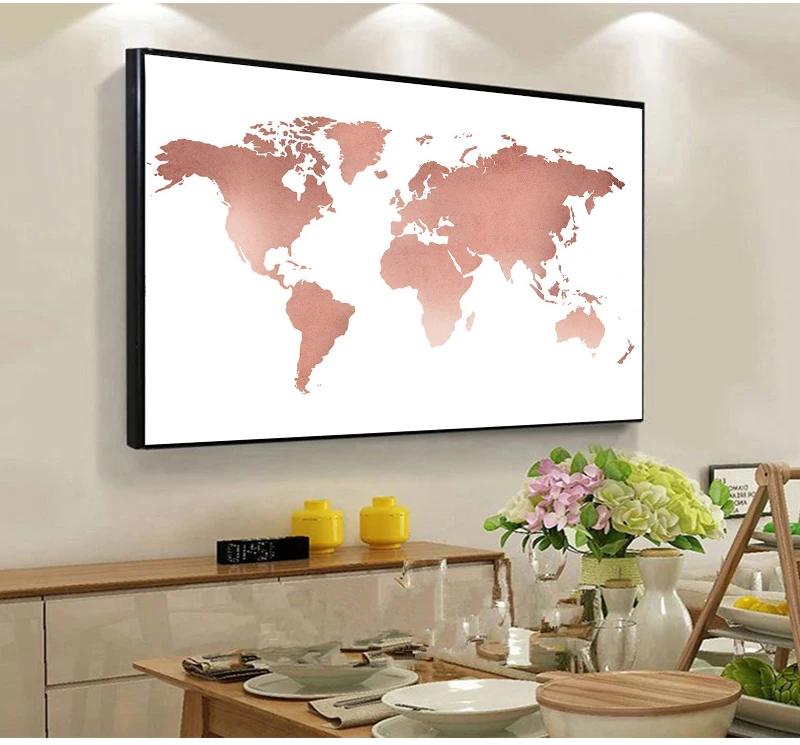Картина для гостиной, домашнее настенное искусство, картина, розовое золото, карта мира, печать, офис, Декор, минимализм, Карта мира, постер, холст
