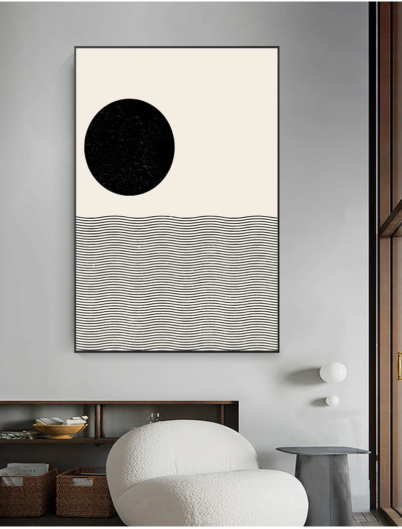 Настенный Декор для дома нейтральных цветов, морской узор с морскими волнами, геометрический постер среднего века, иллюстрация в стиле деревянных блоков