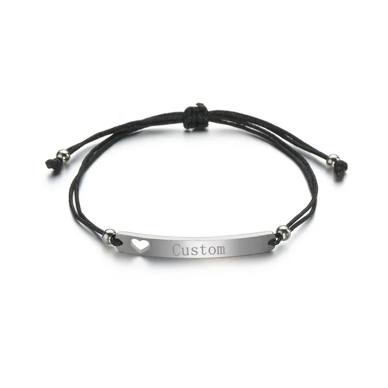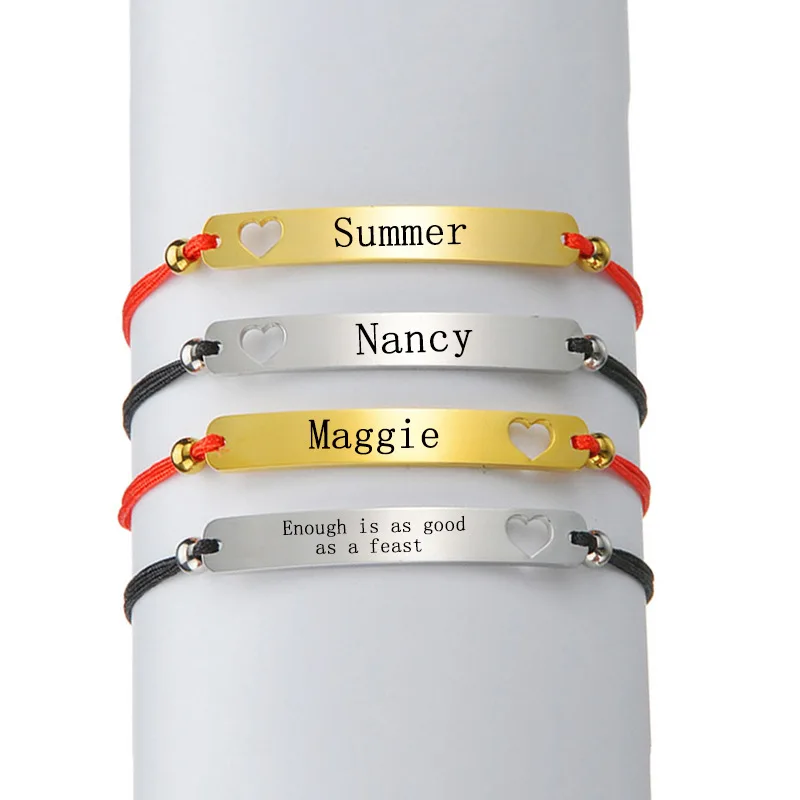 Персонализированный Регулируемый веревочный браслет из нержавеющей стали с именем на заказ, браслет с вырезами в форме сердца для женщин и девушек, ювелирные изделия, подарок