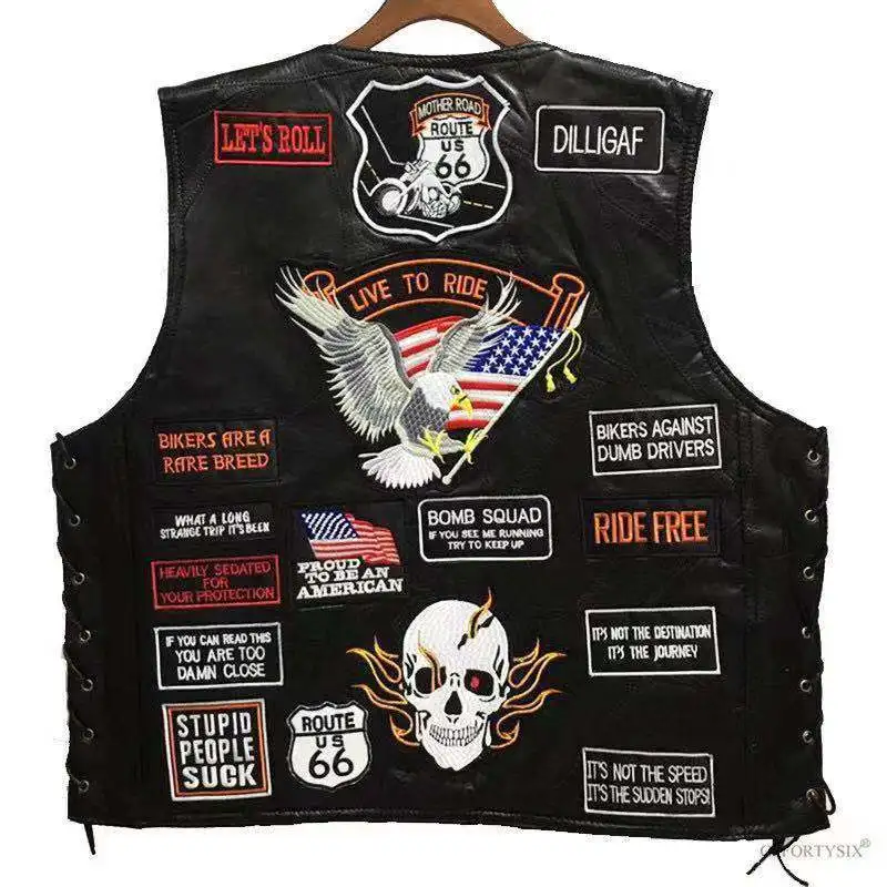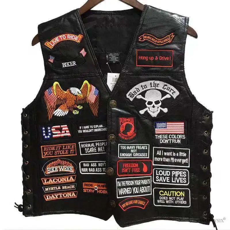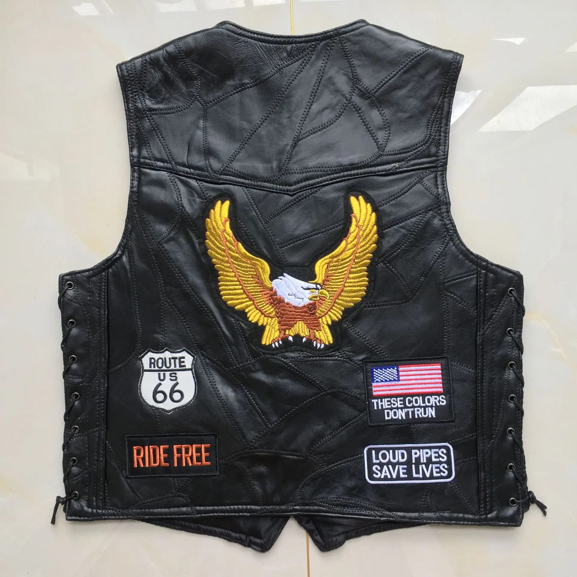 Мотоциклетная кожаная куртка без рукавов с вышивкой, мужчкие спортивные в стиле панк; Модная брендовая одежда с вырезом больших размеров свободного покроя из искусственной кожи искусственная (-ый) Байкерская кожаная куртка для мужчин