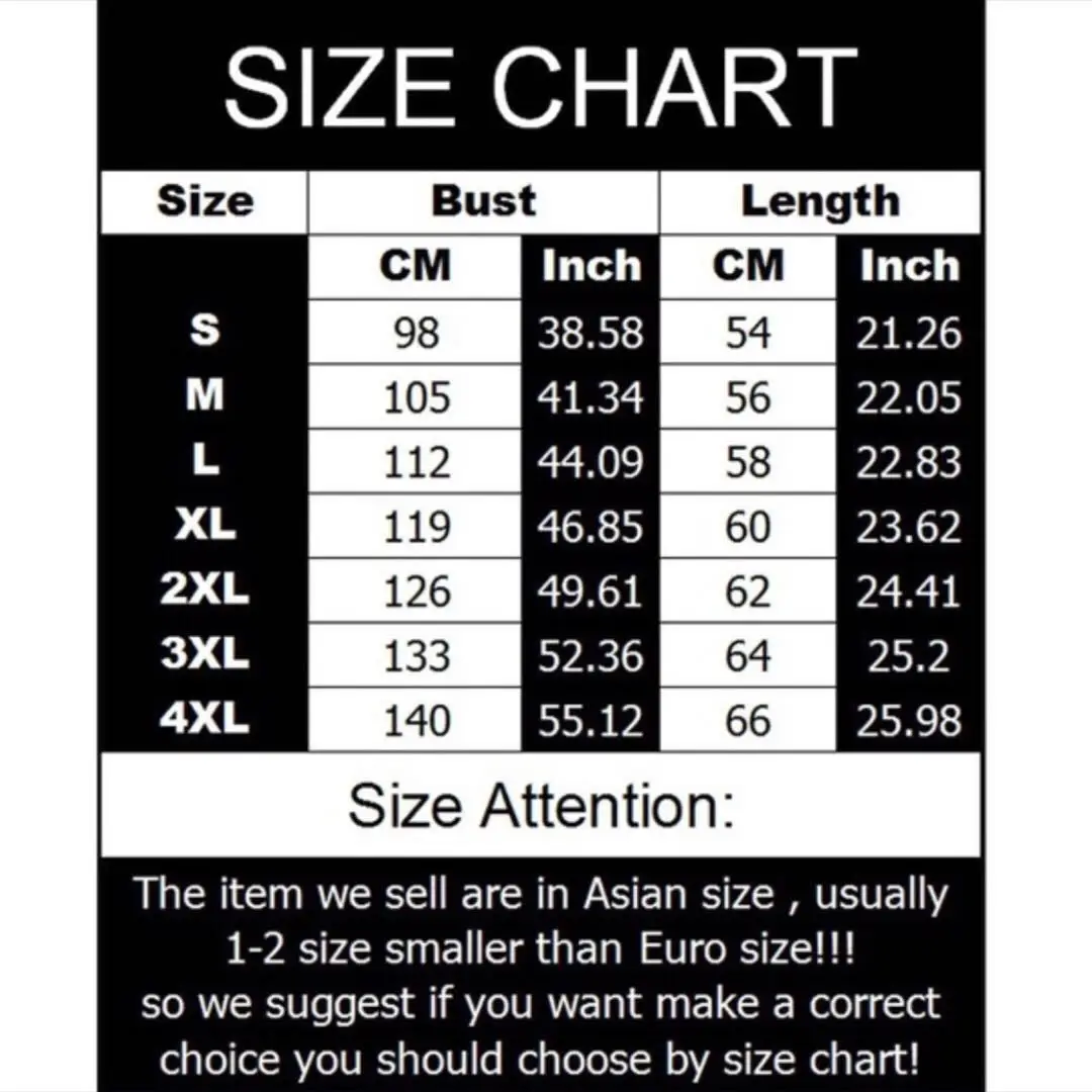Asian SizeS/M/L/XL/XXL/XXXL/4XL