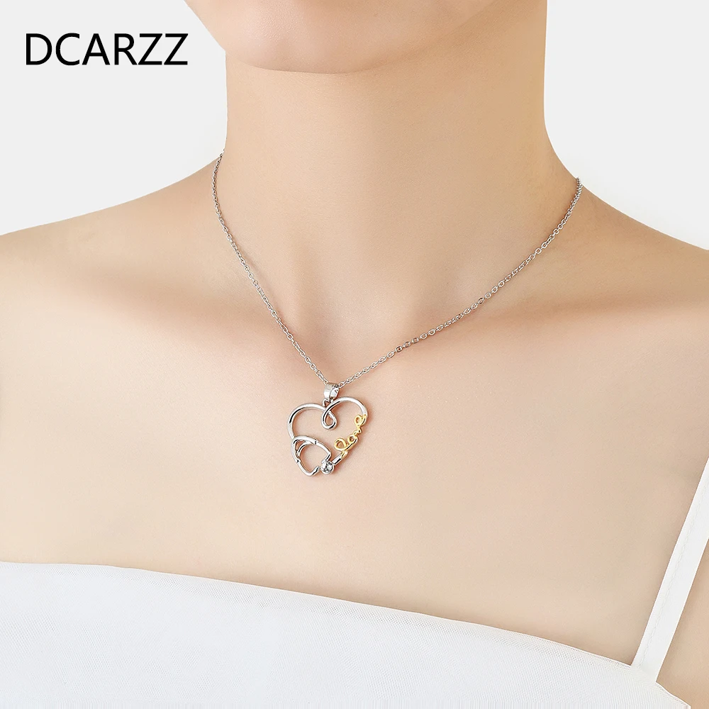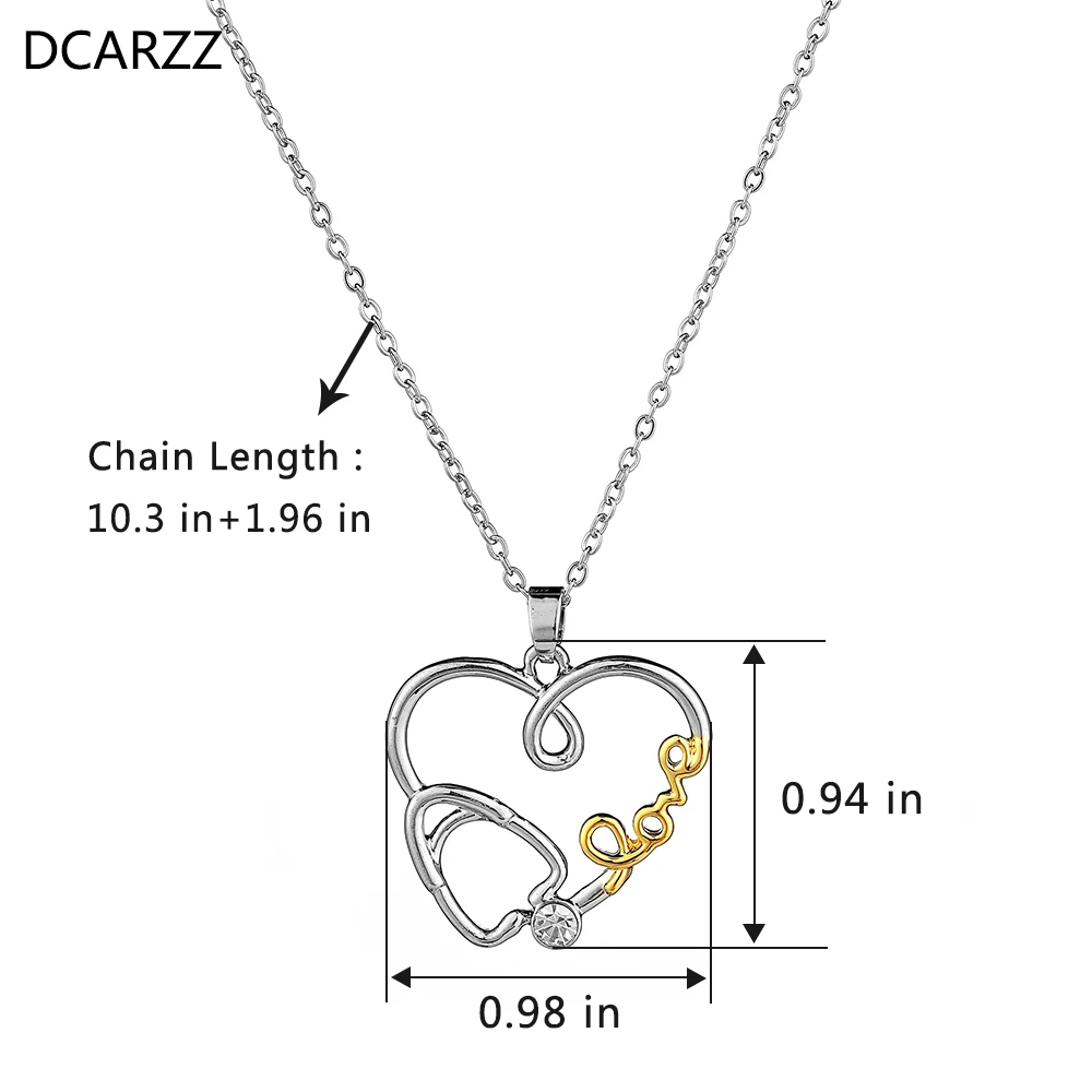 DCARZZ стетоскоп ожерелье в форме сердца из нержавеющей стали стетоскоп Стразы Подвеска для врача медицинский студент подарок медсестра ювелирные изделия