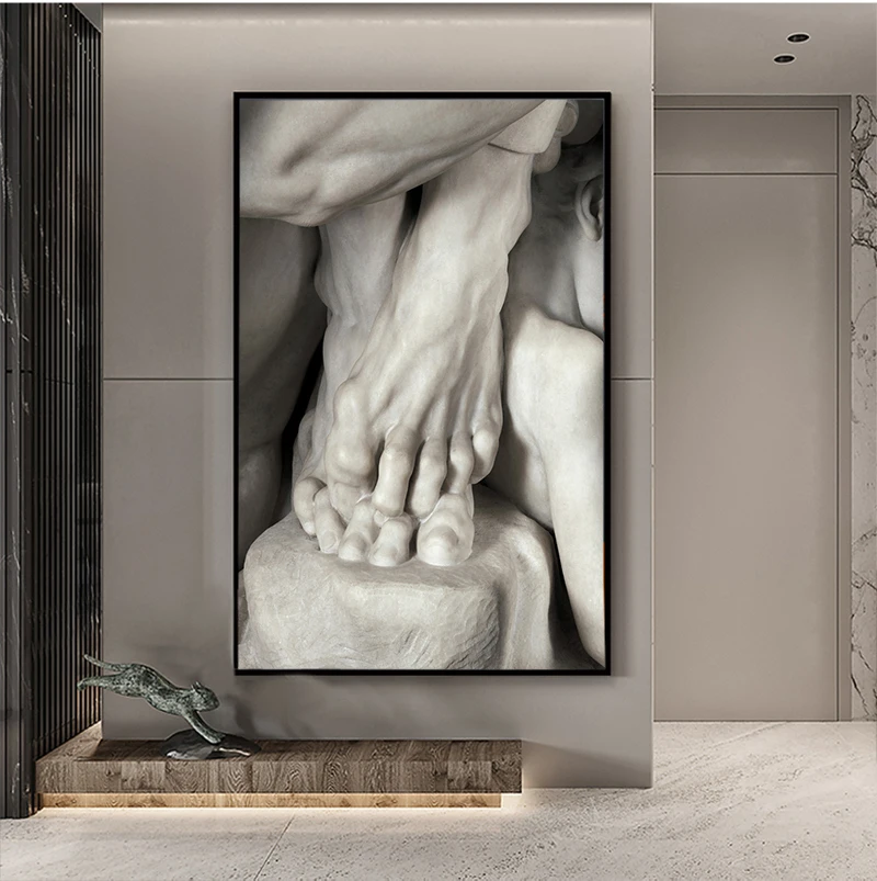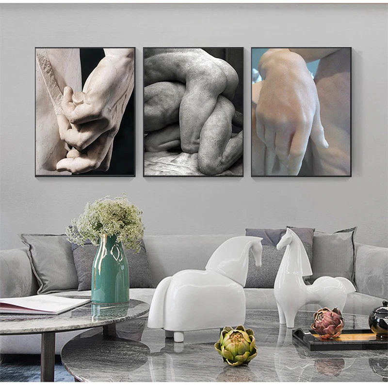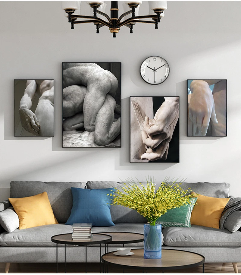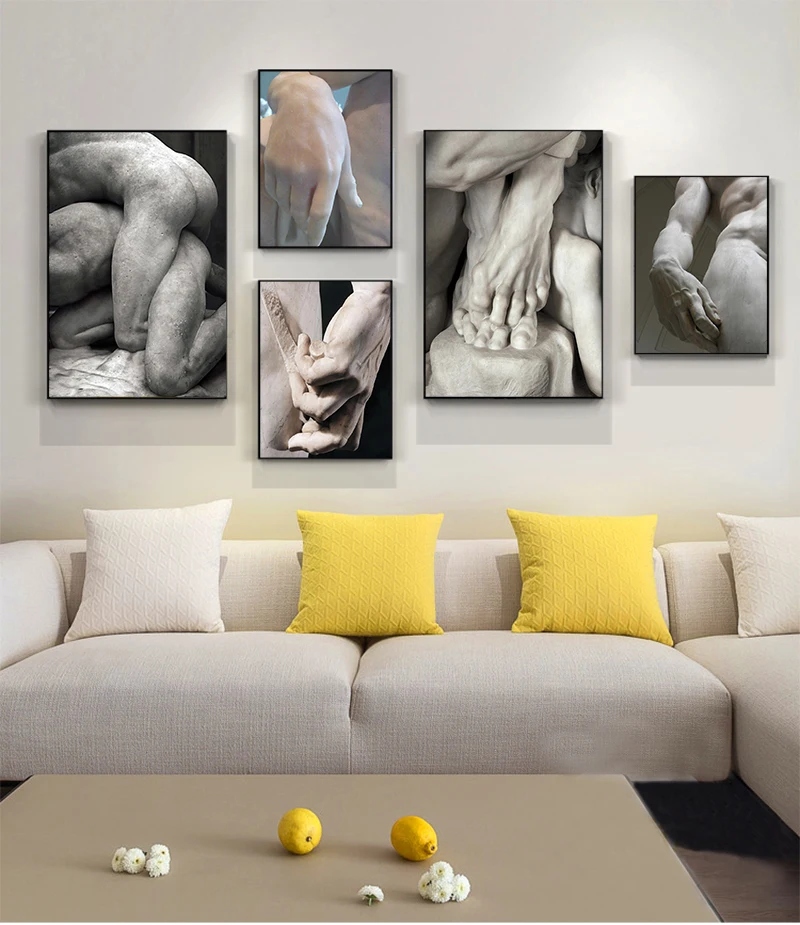Художественные картины на холсте, картины для гостиной, домашний декор, скульптура Микеланджело, черный, белый, Давид, настенная стена