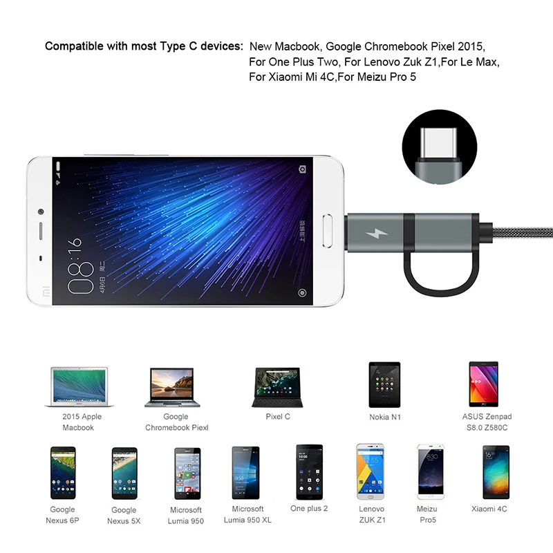 Model Number2 in 1 Micro USB Type C Cable