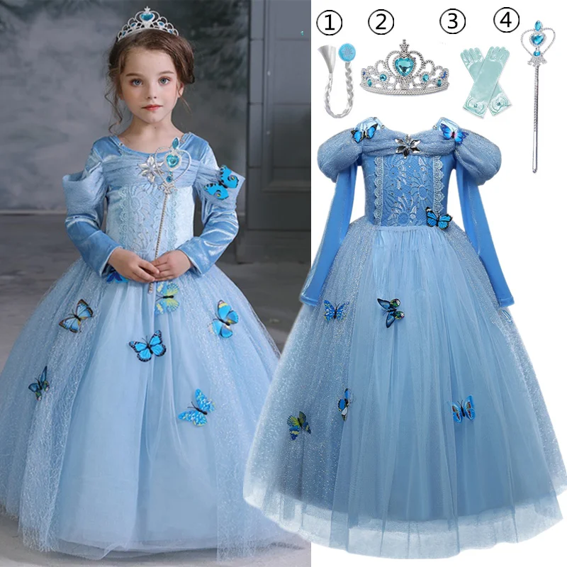 Платье принцессы для девочек, костюм для косплея, детвечерние наряд...