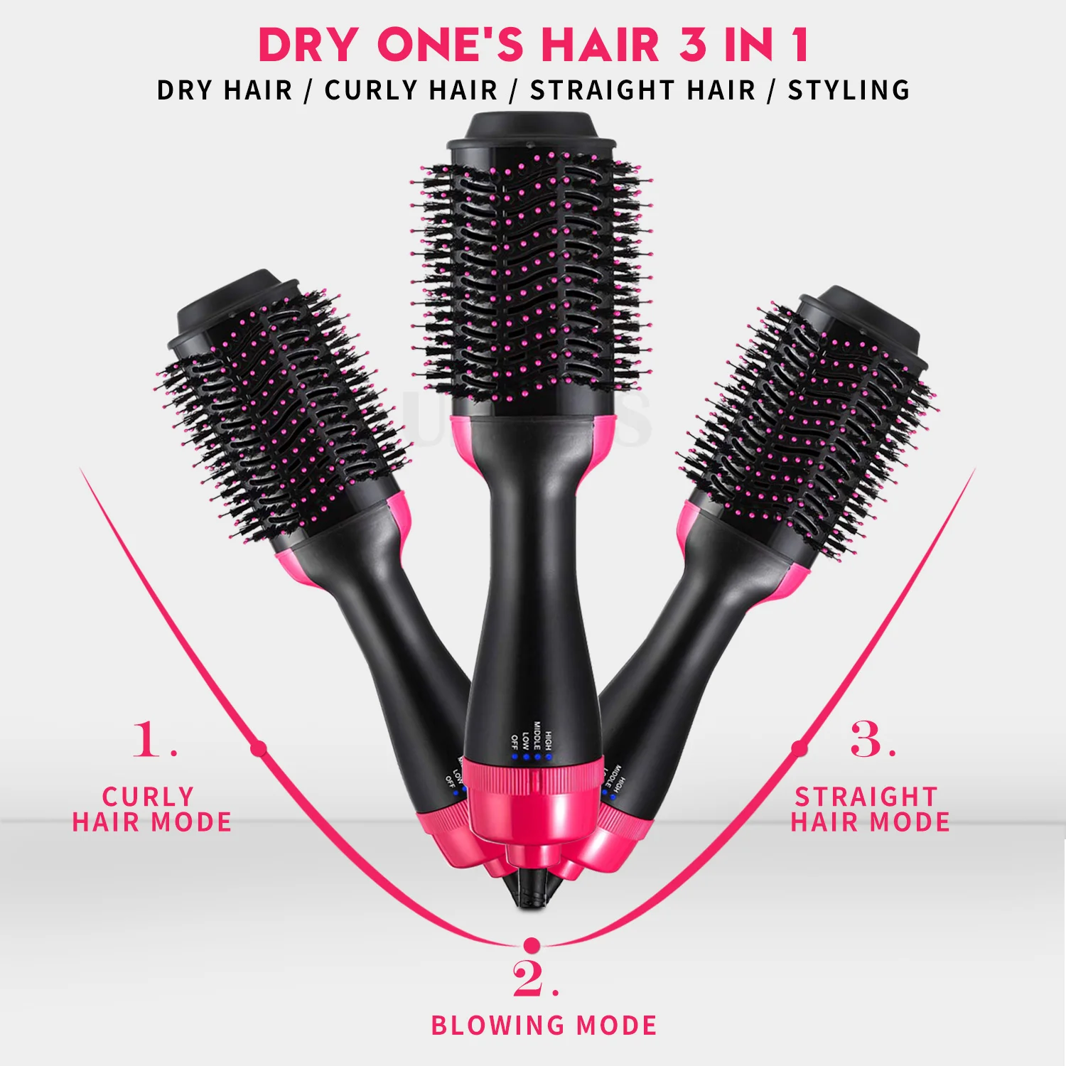 1. Одношаговая щетка для сушки волос и испарителя спроектирована с помощью нейлоновый штырь и щетины для легкого распутывания волос. Комбинированный фен для волос с расческой для укладки, вы можете высушить волосы и сделать ваши волосы кудрявыми или прямыми одновременно!2. Легкий эргономичный дизайн: овальная кромка обеспечивает максимальный комфорт и удобство использования во время укладки.3. Профессиональный поворотный шнур: с 360 поворотным шнуром питания, шнур не скручивается. Felixible для легкой укладки и движения.4. Нейлоновые щетинки без ангела: кисть спроектирована с помощью нейлоновый штырь и щетины, легко гладит волосы и осязается во время работы.5. Несколько настроек тепла: 3 настройки нагрева и температуры для различных типов волос.